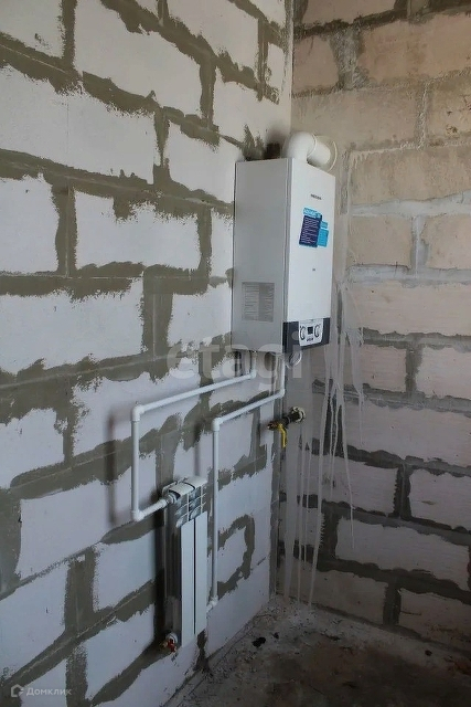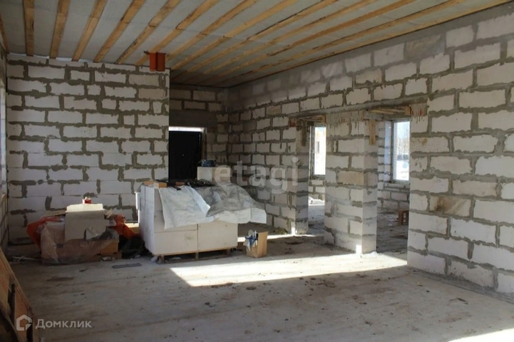 Дом построен из газосиликата, отделан облицовочным кирпичом, есть утеплитель 50 мм. На 1 этаже: холл, гостиная, кухня, сан.узел, бойлерная, 2 спальни.