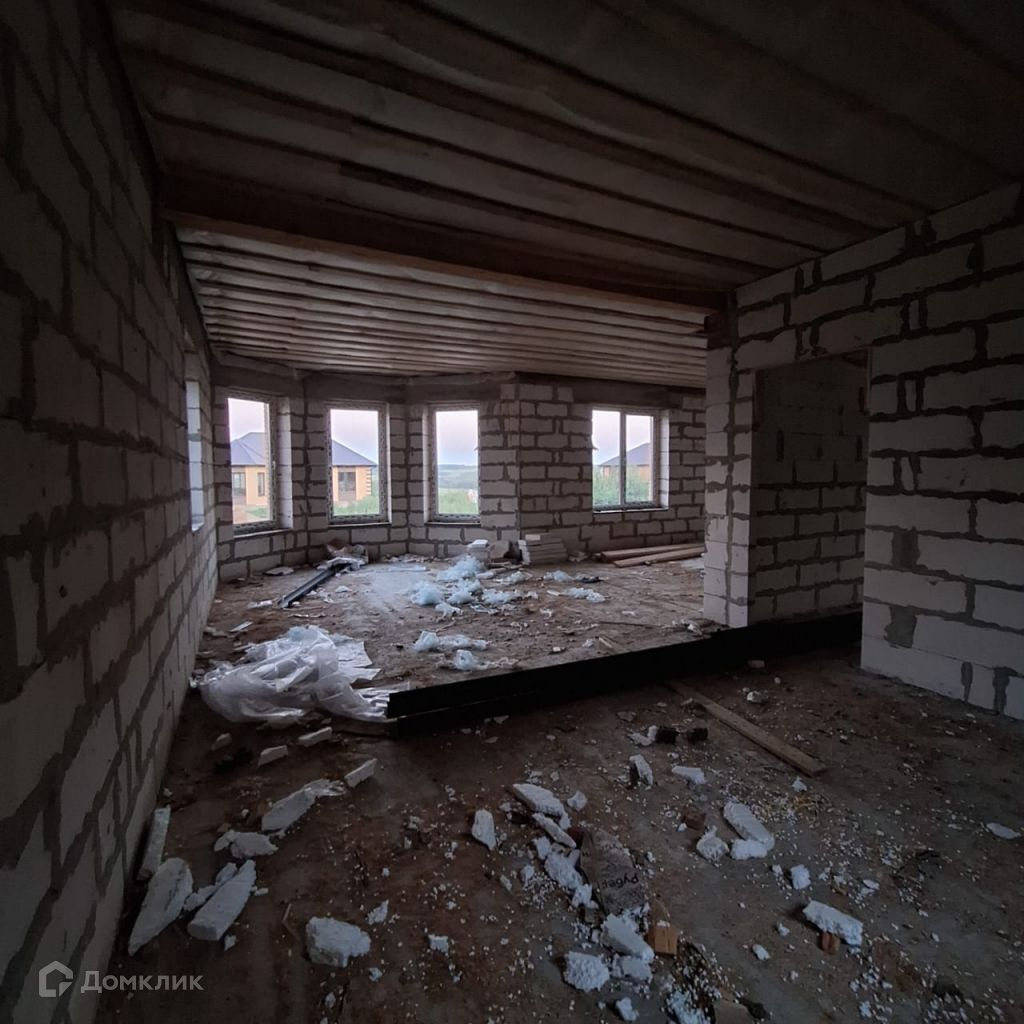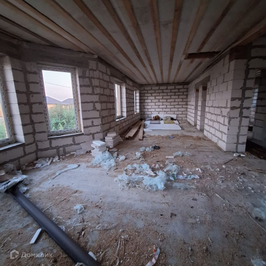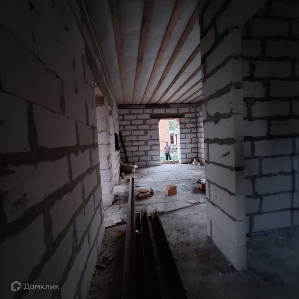 Дом построен из газосиликатных блоков, утеплитель, облицовочный кирпич, свайно-столбчатый   фундамент,   крыша перекрыта металлочерепицей.