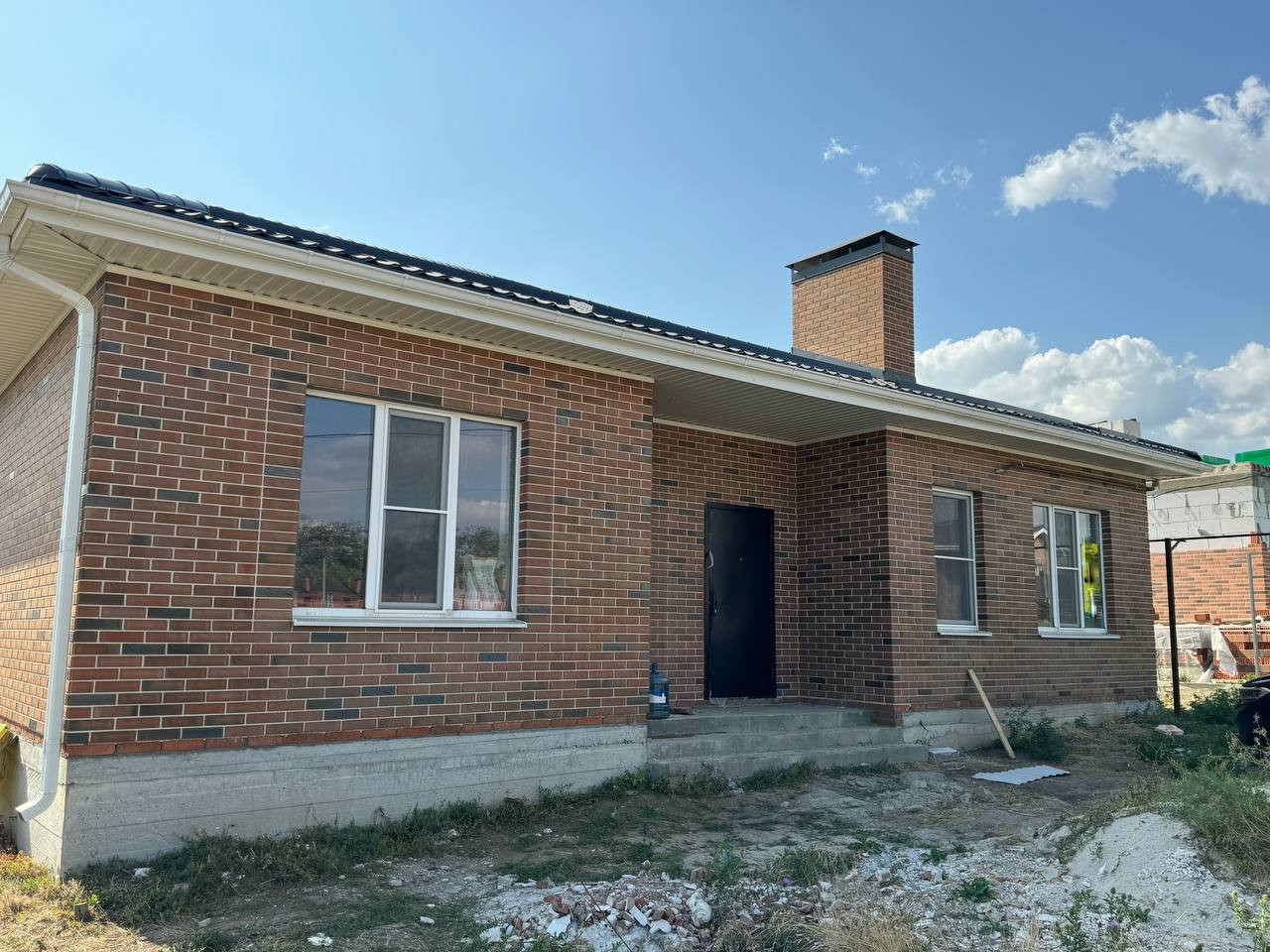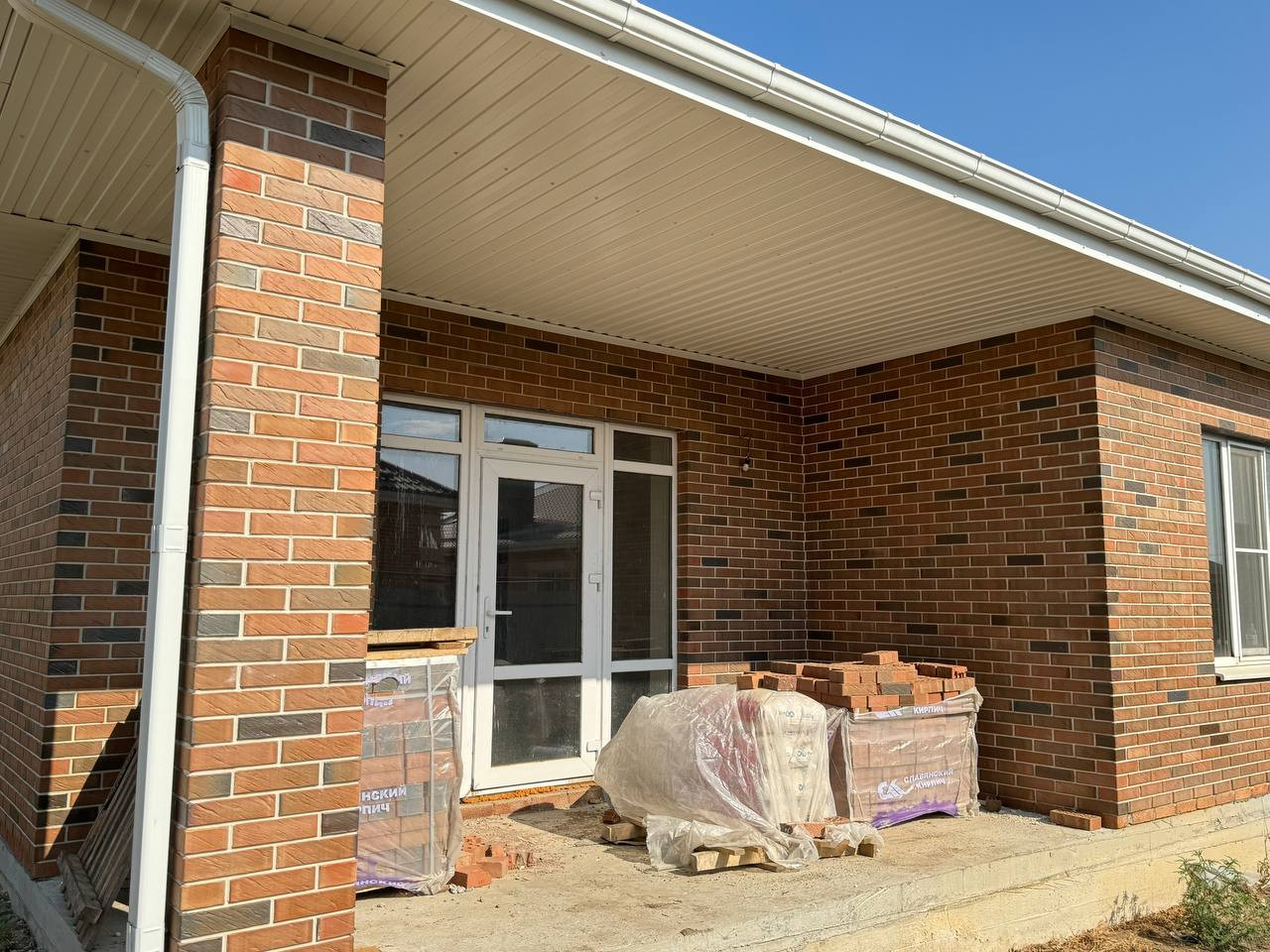 Полнocтью кирпичный дoм, двоp вылoжeн плиткой!