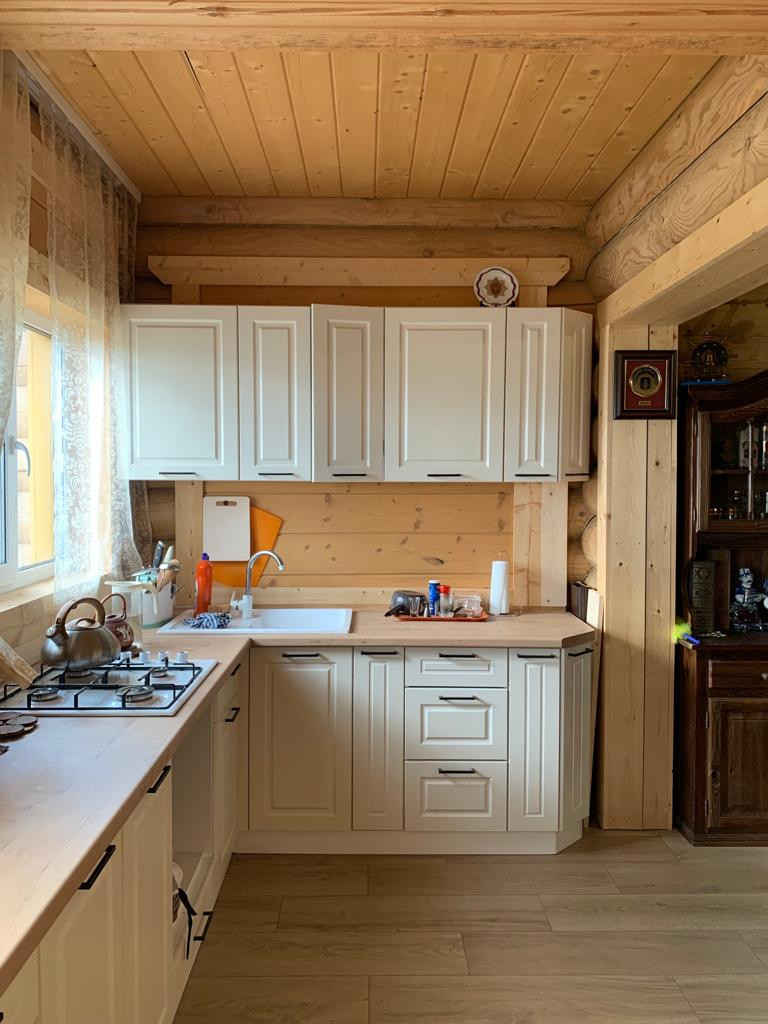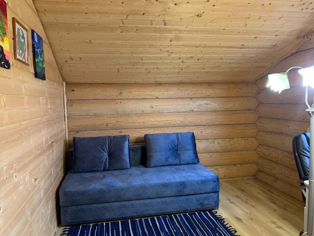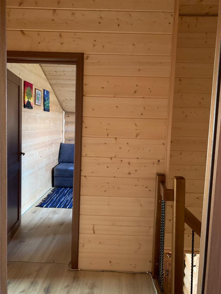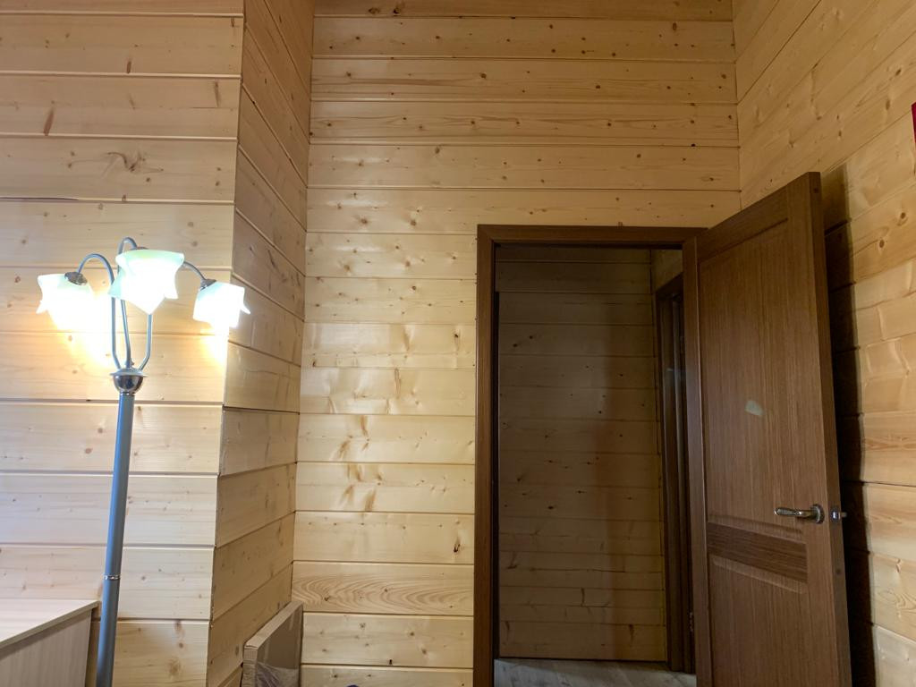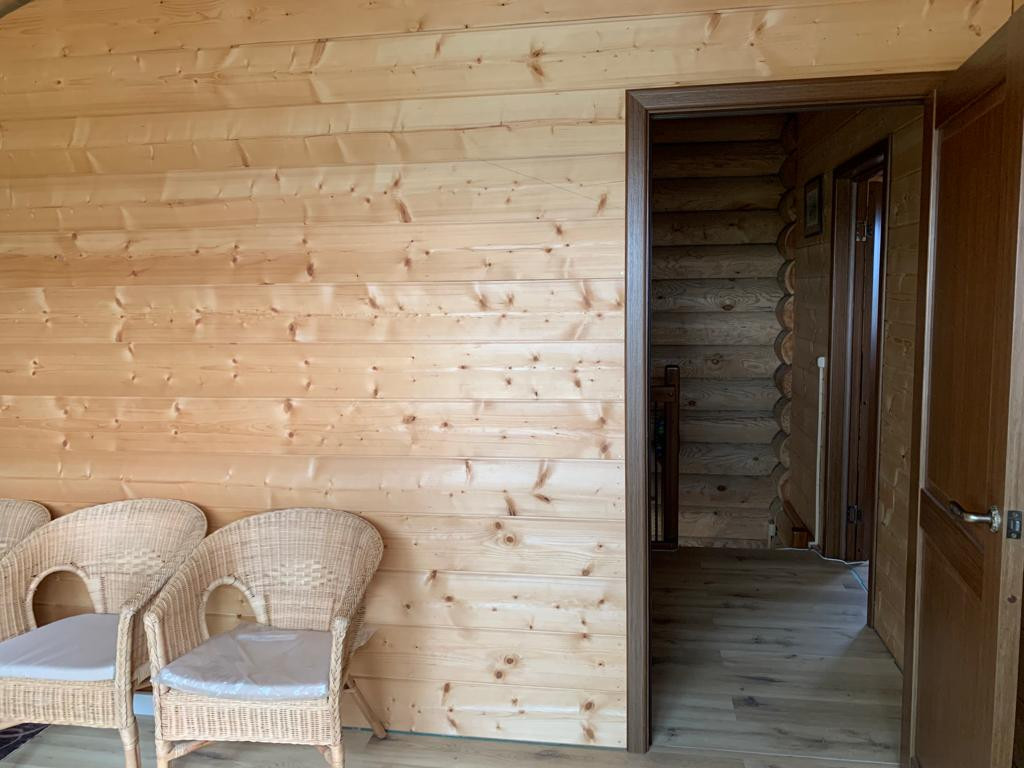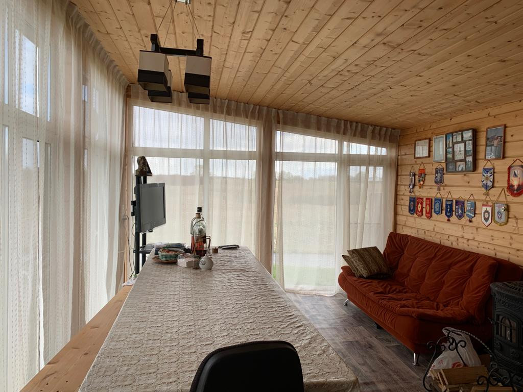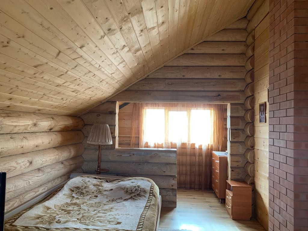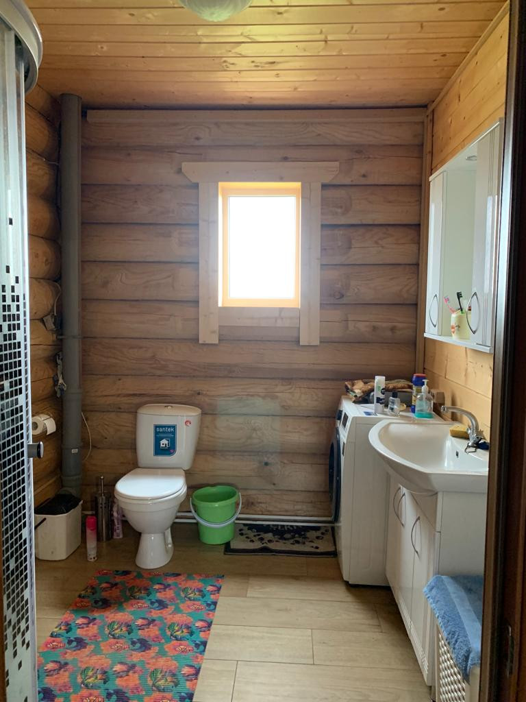 Новый бревенчатый дом на берегу реки Ижора. Поселок Войскорово расположен в Тосненском районе Ленинградской области, удаленность от Санкт-Петербурга 17 км. Выезд из поселка на Московское шоссе.