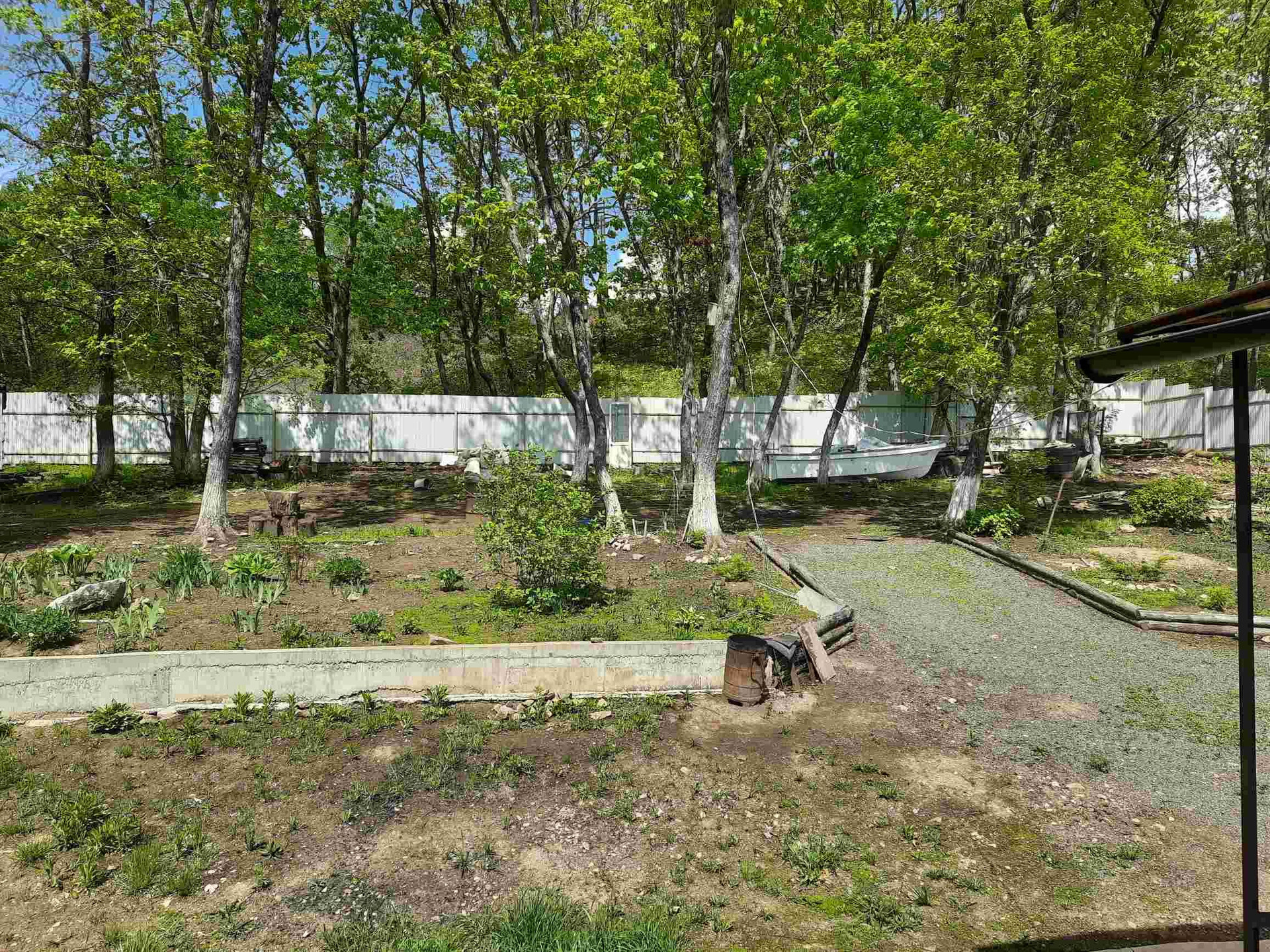Территория огорожена . Откатные ворота на пульте .