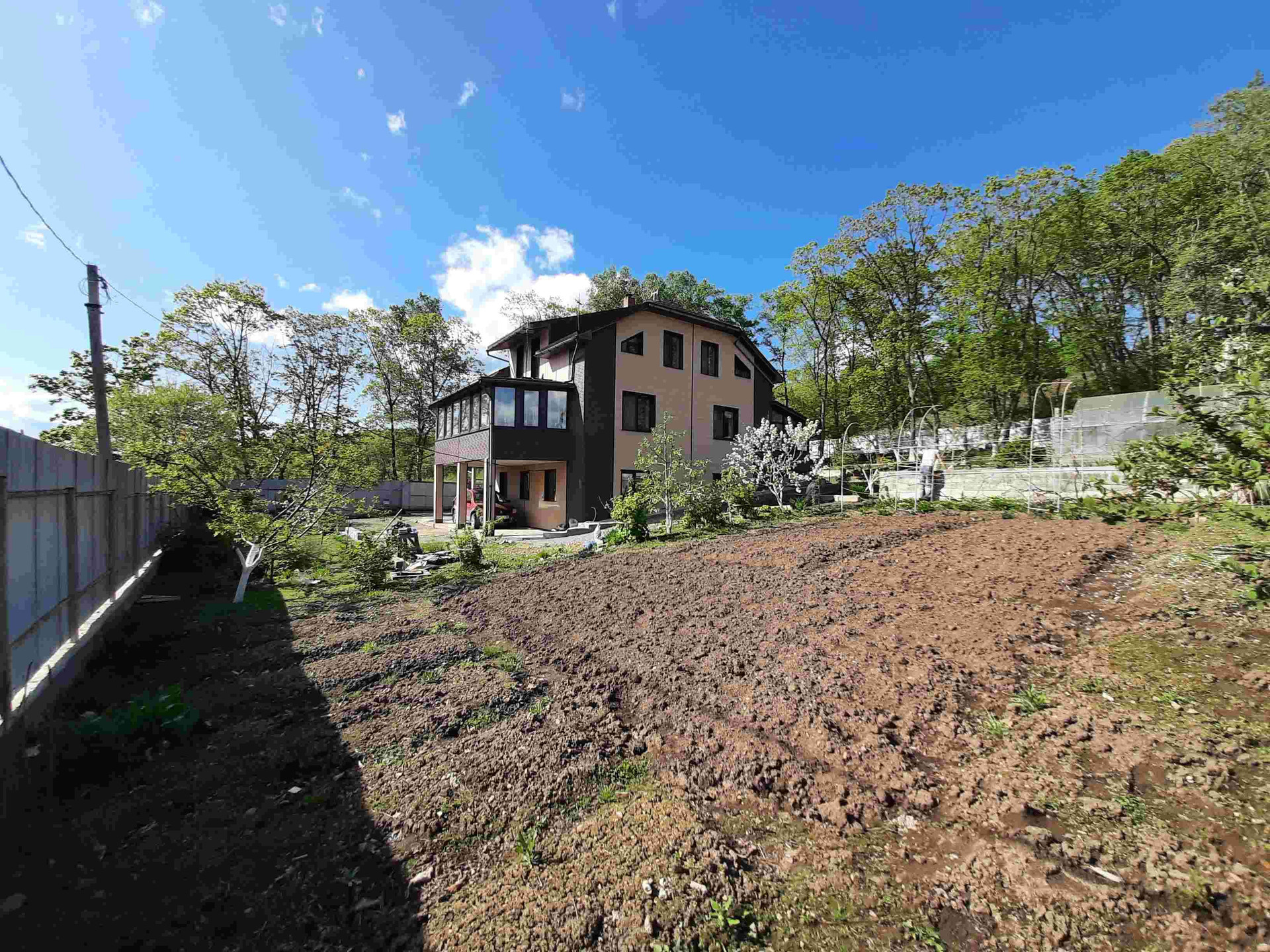 Дом расположен в роще, сразу за домом лесок.