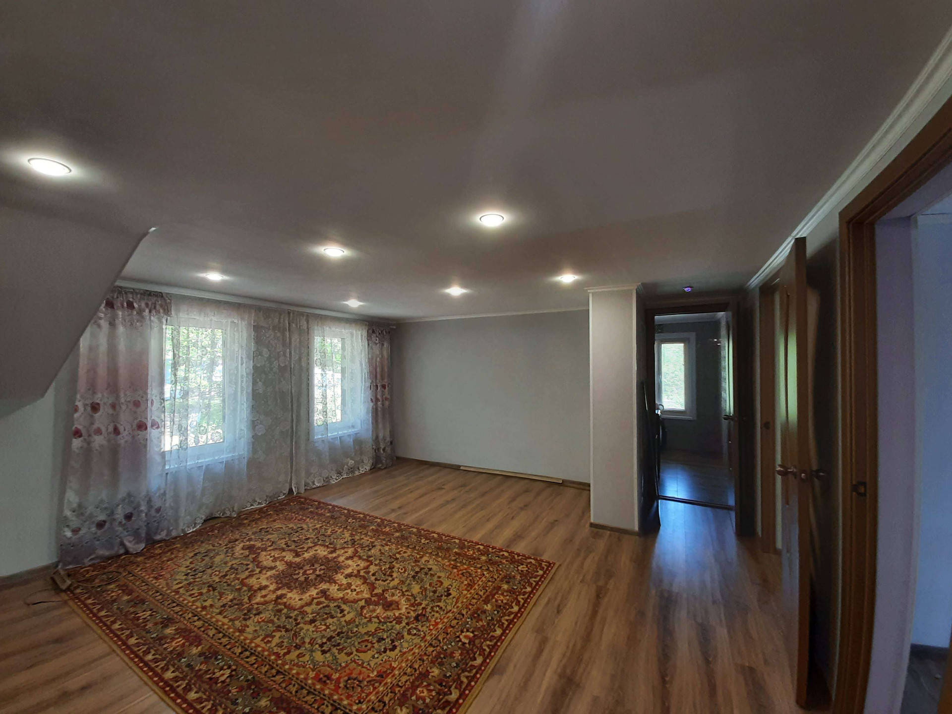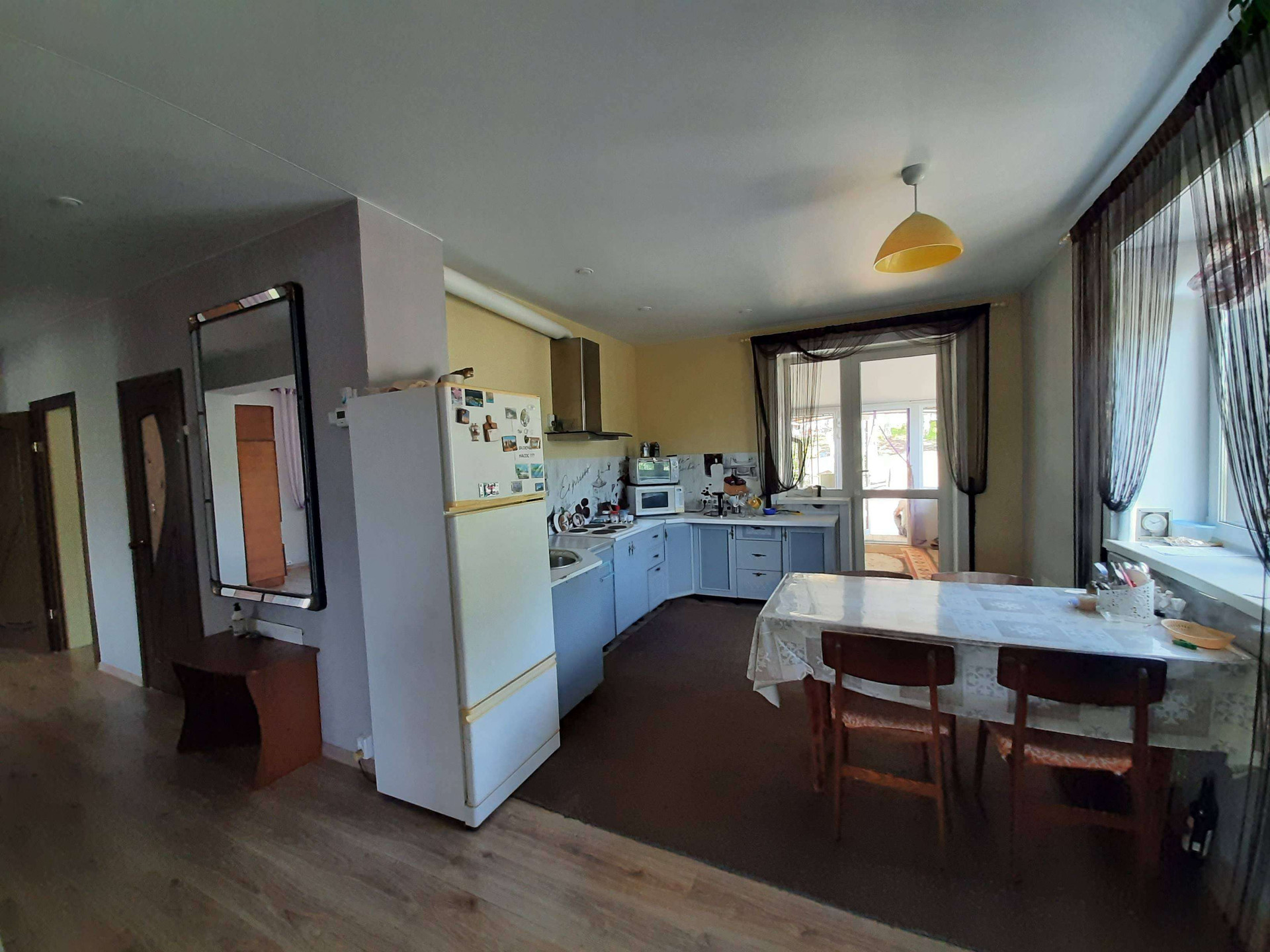 2 этаж -3 комнаты , огромный крытый балкон, санузел, просторная кухня .