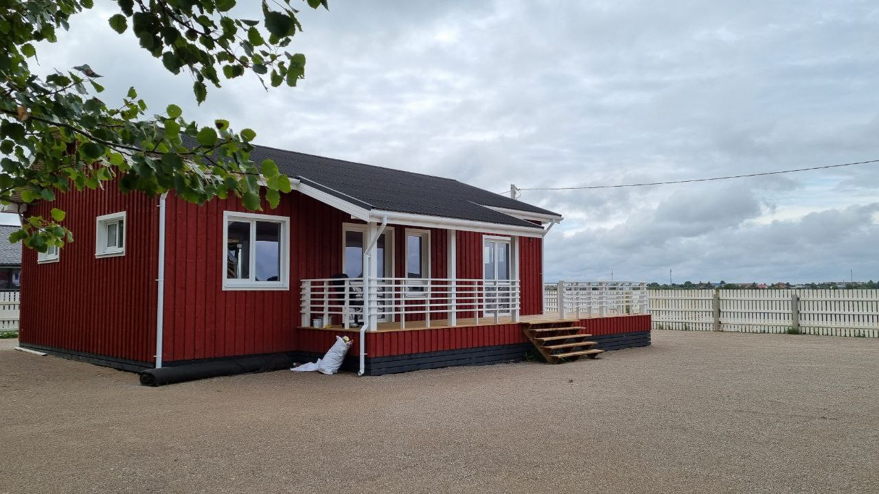 Каркасный дом расположен в клубной застройке Сканди Клаб на готовом просторном участке 10 соток - забор, отсыпка, оканавлен (п. Волховец, застройка напротив п. Нанино).