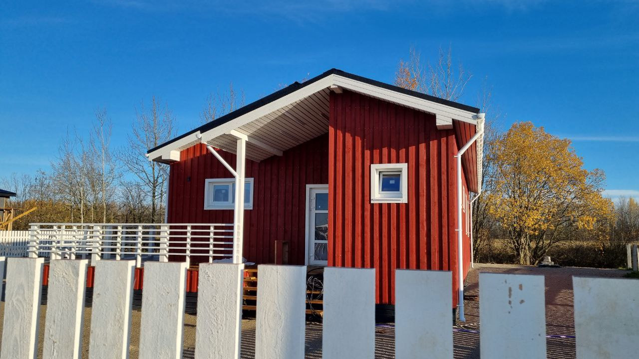 Отделка дома снаружи фасадной доской с тонкопиленной поверхностью и заводской покраской материалами компании Тиккурила