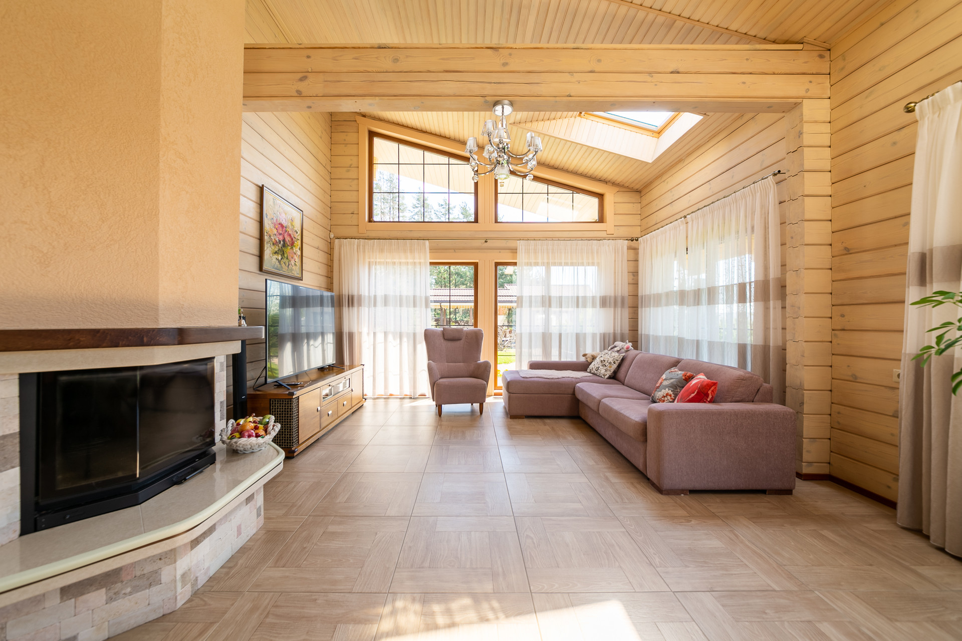 Дом построен из клееного бруса - 200 мм. Композитная черепица Metrotile.