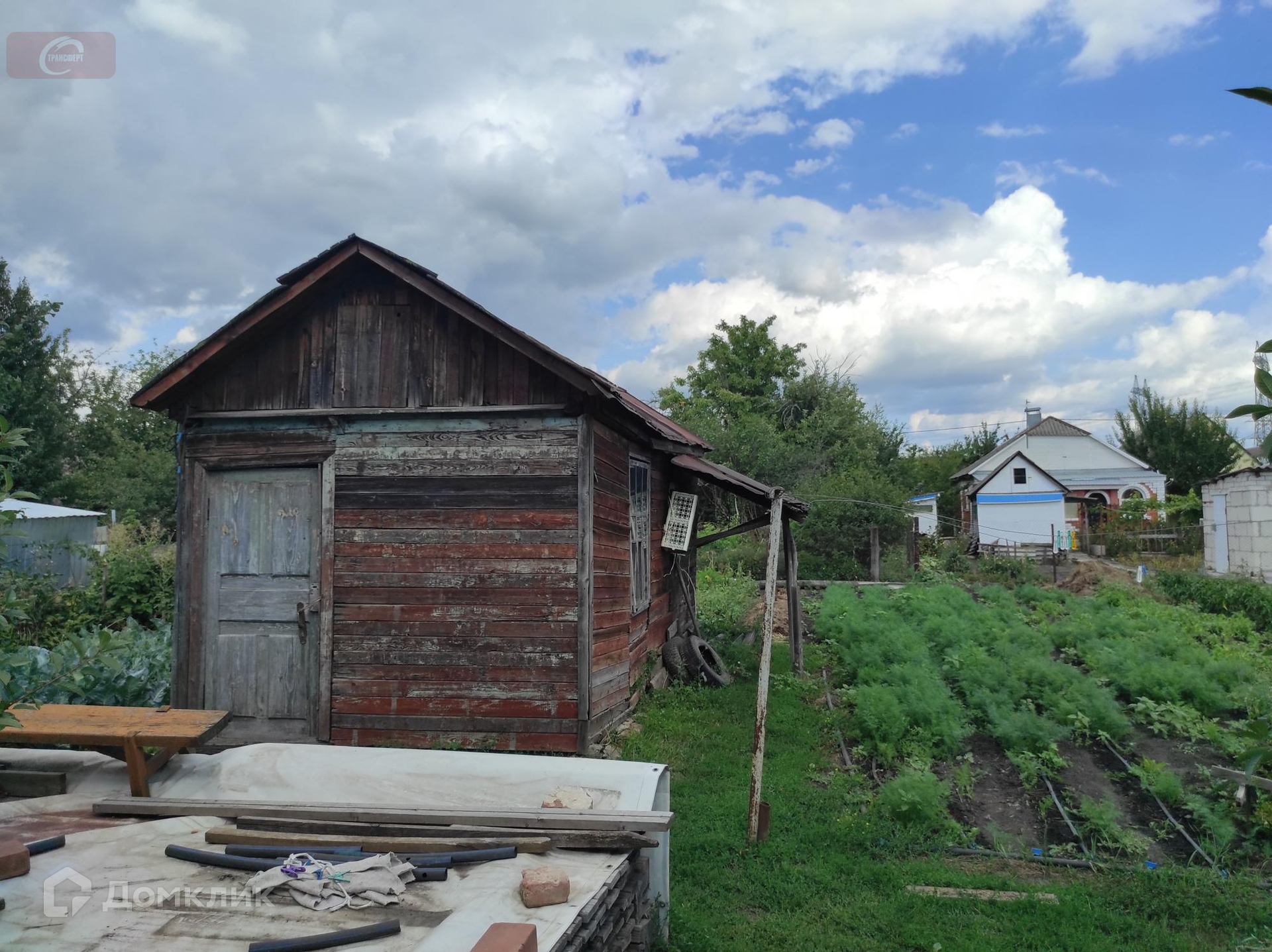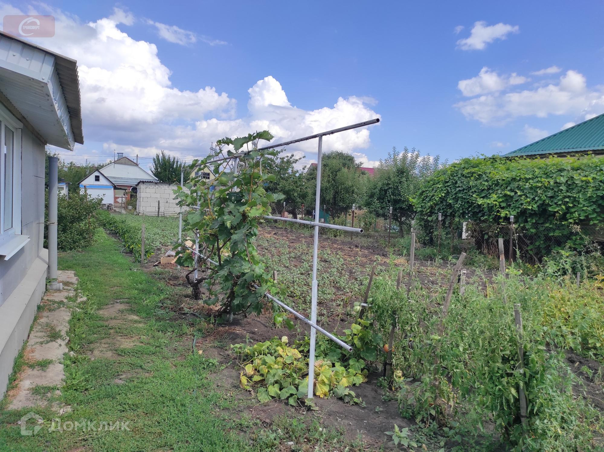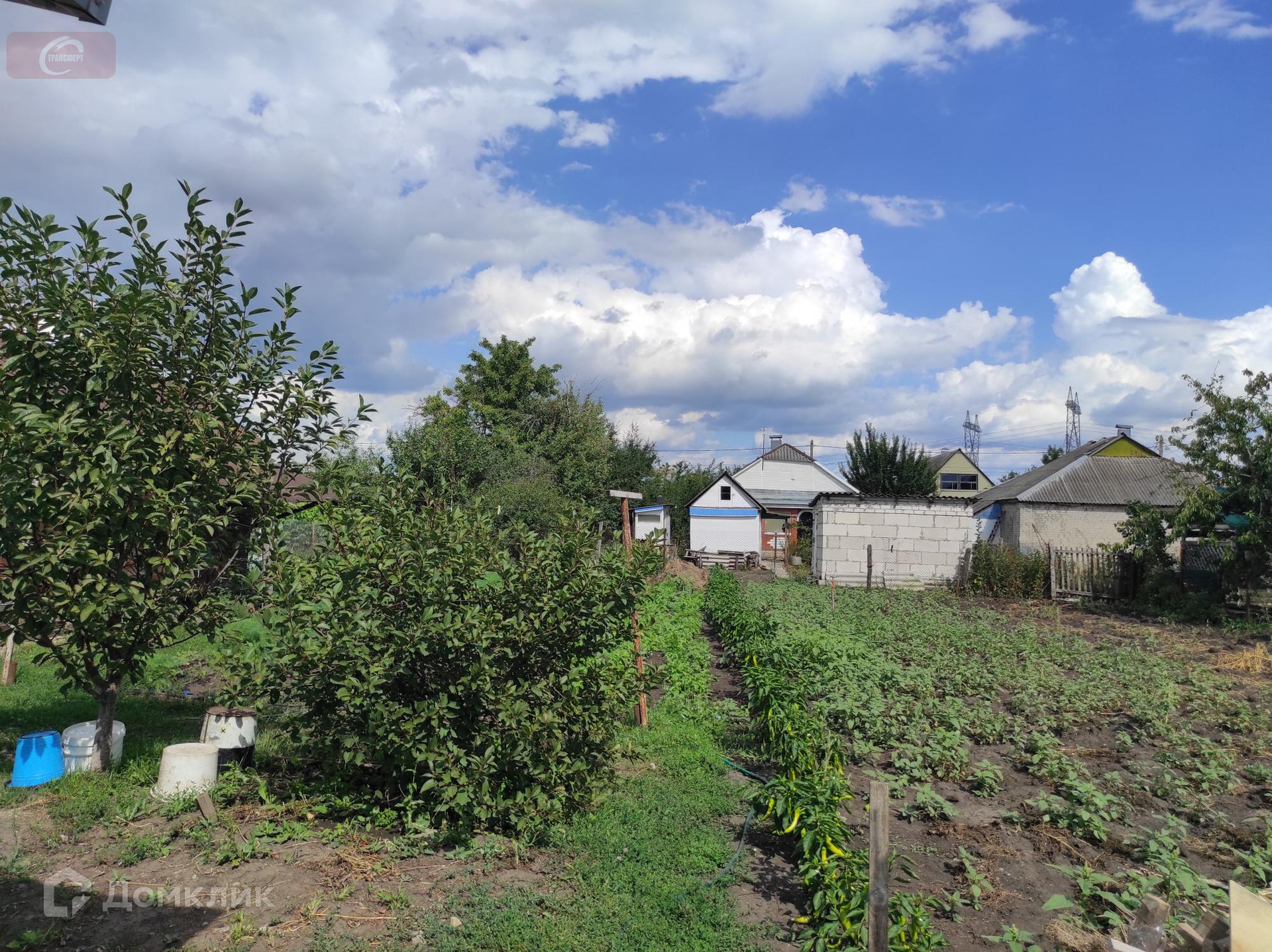 Участок - полноценные 8 соток, огорожен по периметру сеткой-рабицей, возделывается. Молодой плодоносящий сад с сортовыми деревьями из Бабяковского плодопитомника: яблони, груши, абрикосы, сливы, а также виноград и различные кустарники. Есть сарай для хранения садового инвентаря.