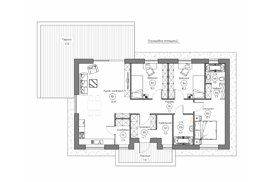 Общая площадь 90 м2