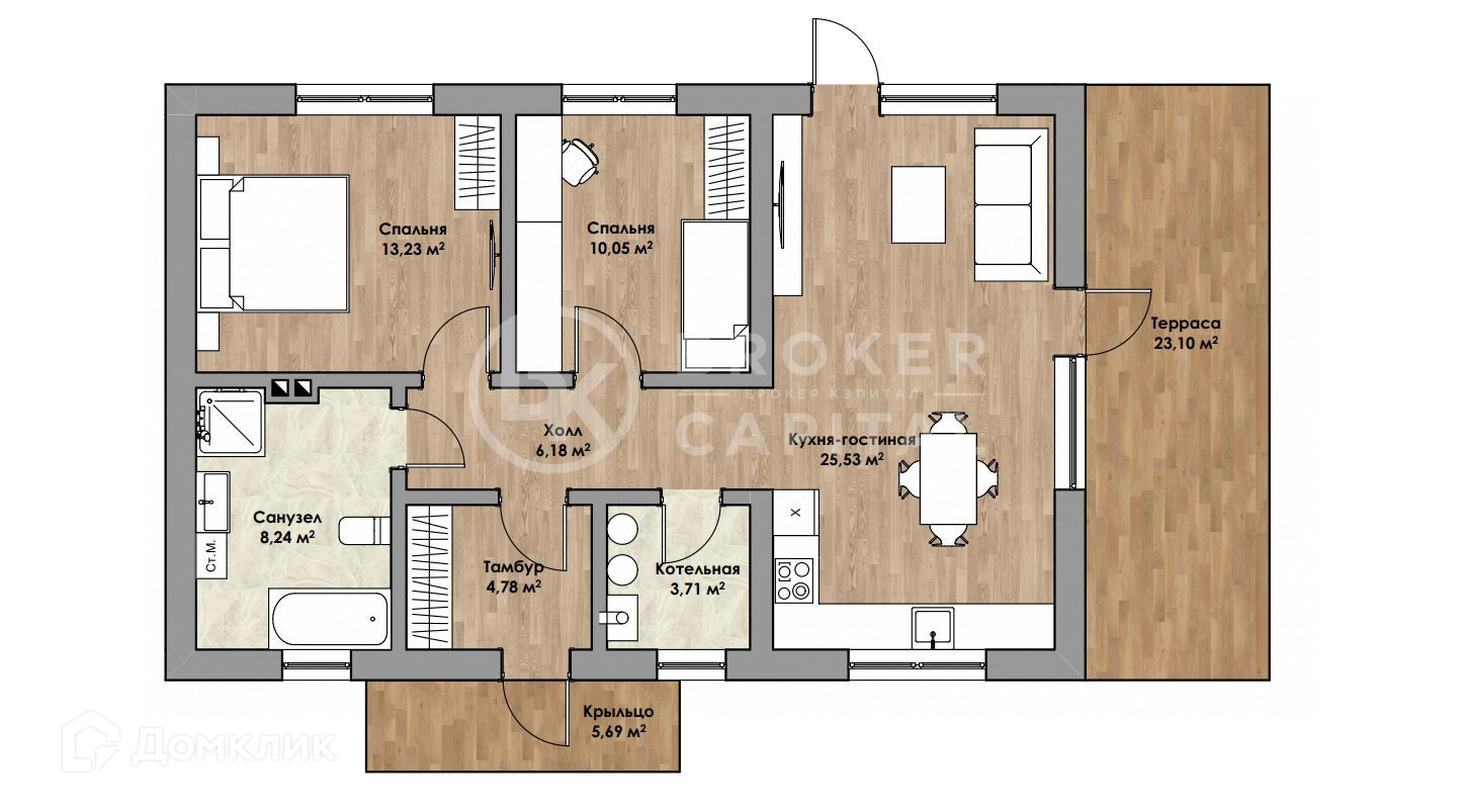 Общая площадь 75.6 м2