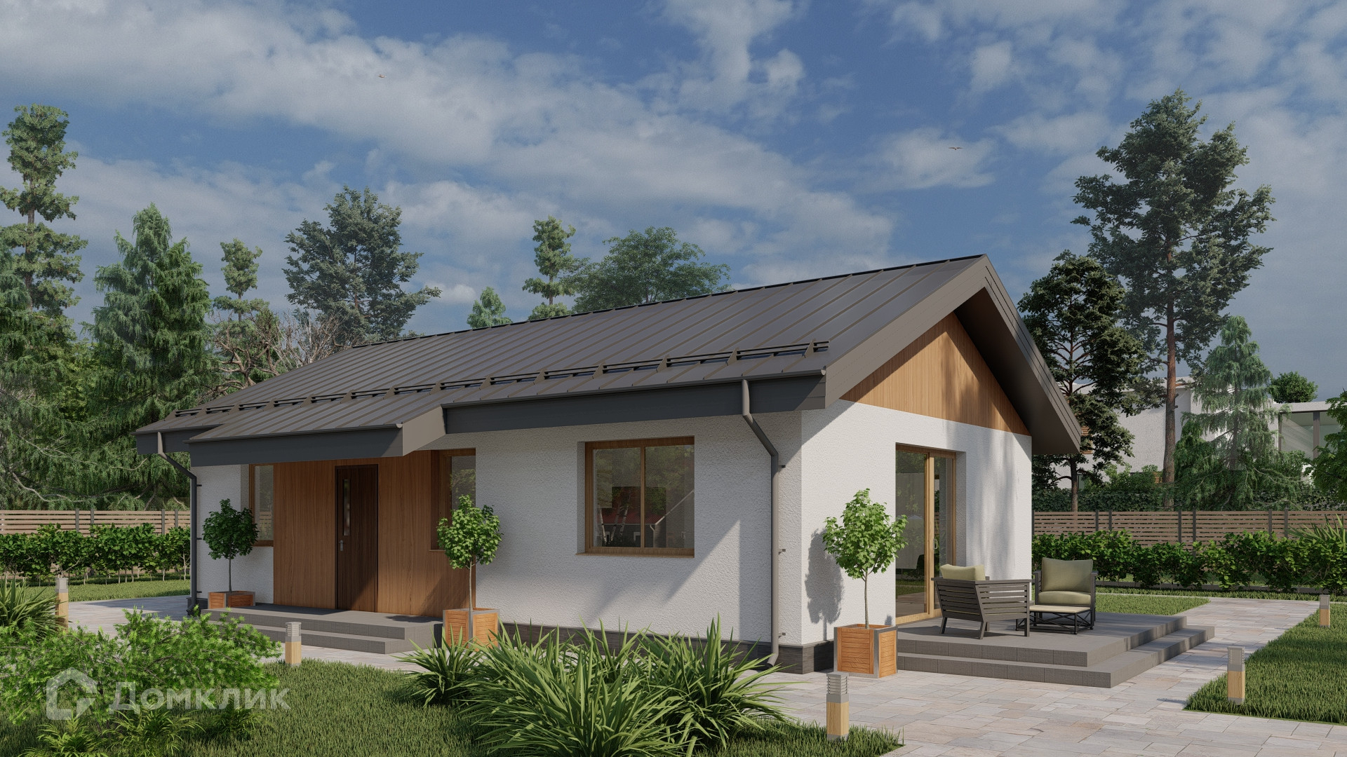 Фундамент монолитная плита 250 мм с закладными под инженерные коммуникации. Несущие стены Сибит 400 мм. Мокрый фасад "короед". Крыша металлочерепица, утепление 250 мм. Подшив свесов, водосточная система.