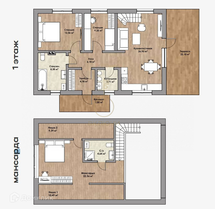 Арт. 63125358 В продаже дом с мансардным этажом общей площадью 100 квм. В стоимость входит участок 8 соток! Ваша выгода 1 518 110 рублей!