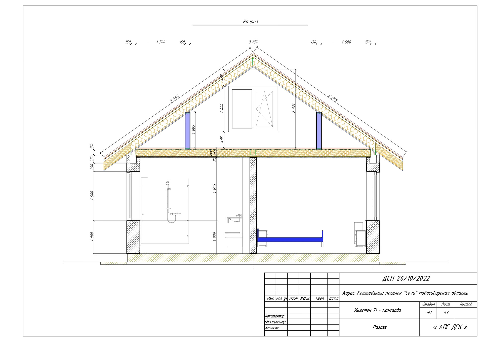 Кровля-мансарда. Металлочерепица с вентиляционным зазором. Утепление 250 мм (базальтовая вата). Индивидуальное оформление доборных элементов оконтовки крыши.