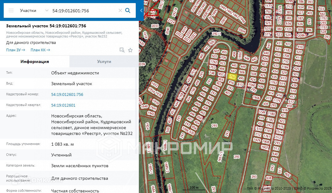 Кадастровый номер участка: 54:19:012601:756.