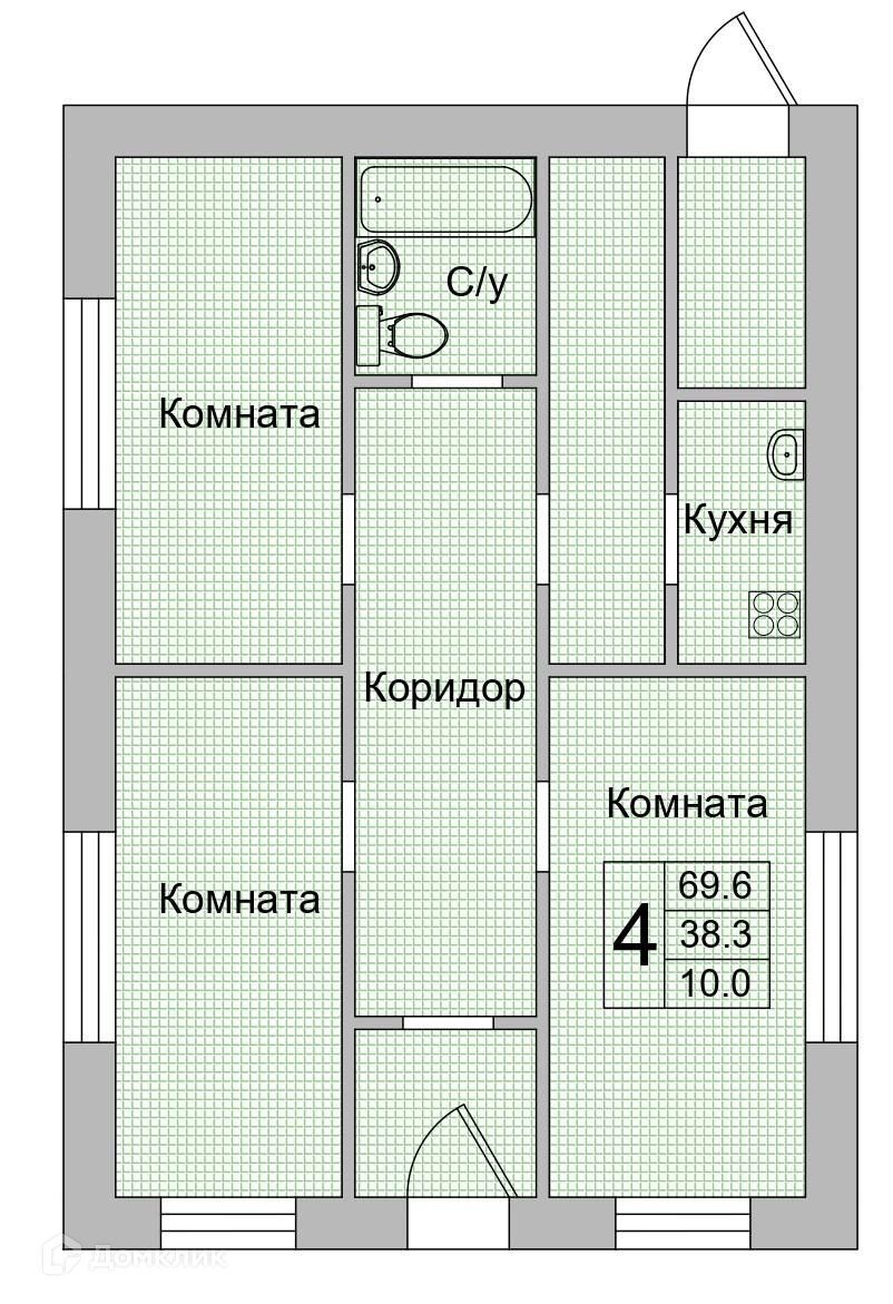 Общая площадь 69.6 м2