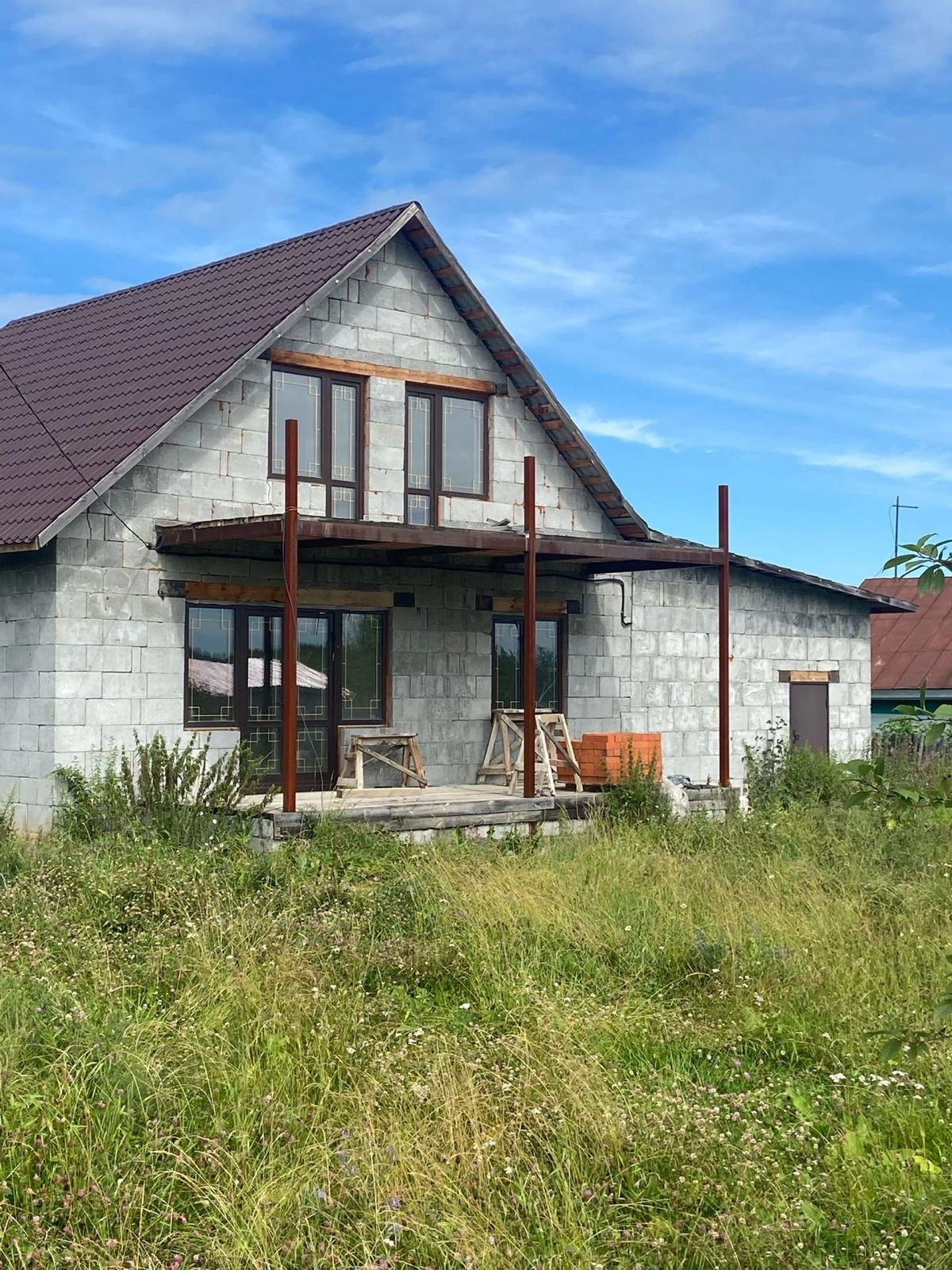 Продам новый двухэтажный дом с черновой отделкой. В живописном экологически чистом месте.  Есть электричество и газ. Из эксперементальных стройматериалов.