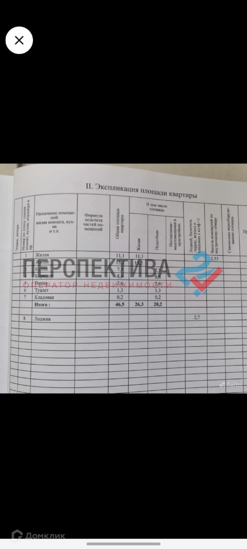 Общая площадь 46.5 м2