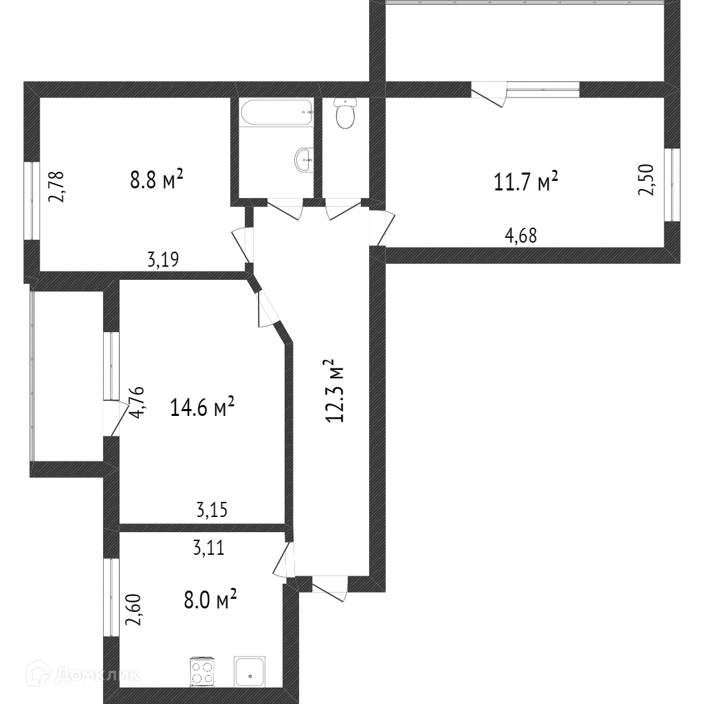 Общая площадь 78.5 м2