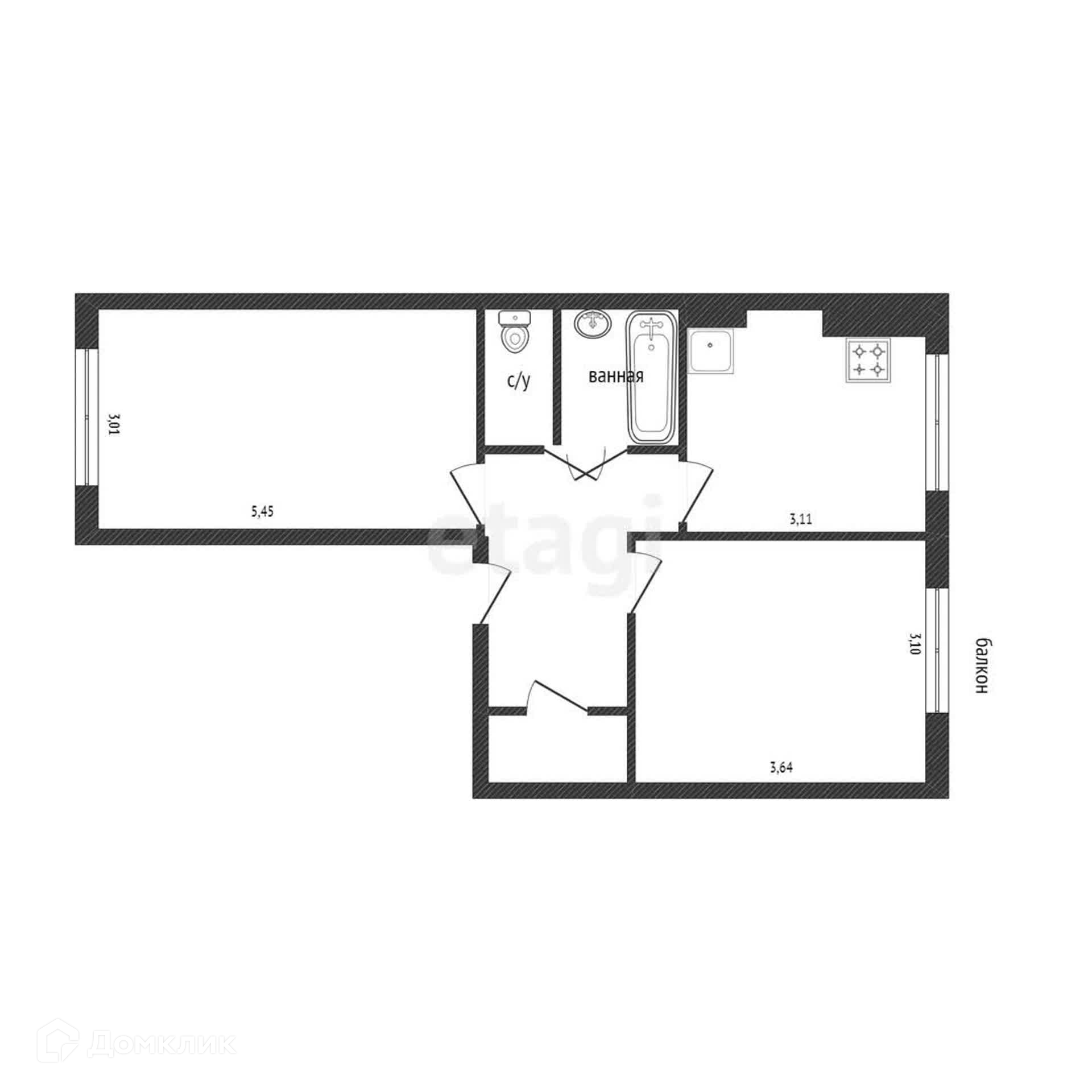 Общая площадь 54.1 м2