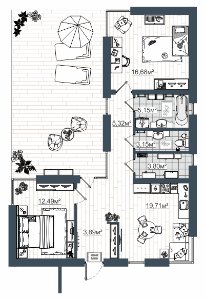 Общая площадь 71.42 м2