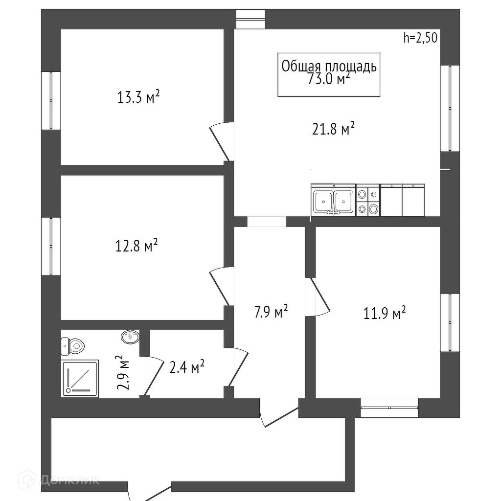 Общая площадь 73 м2