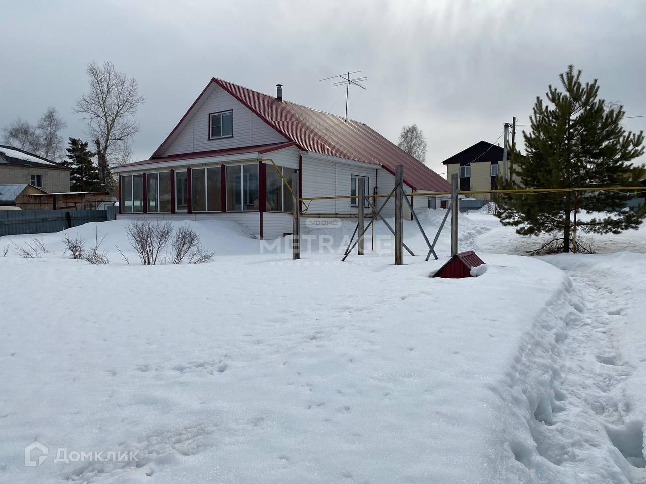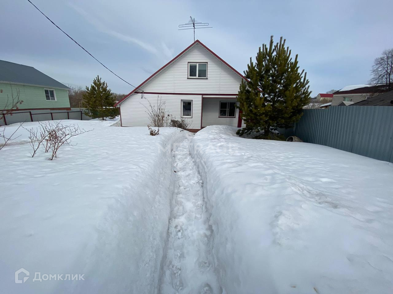 Дом очень теплый, светлый, на участке высажены многолетние ели.