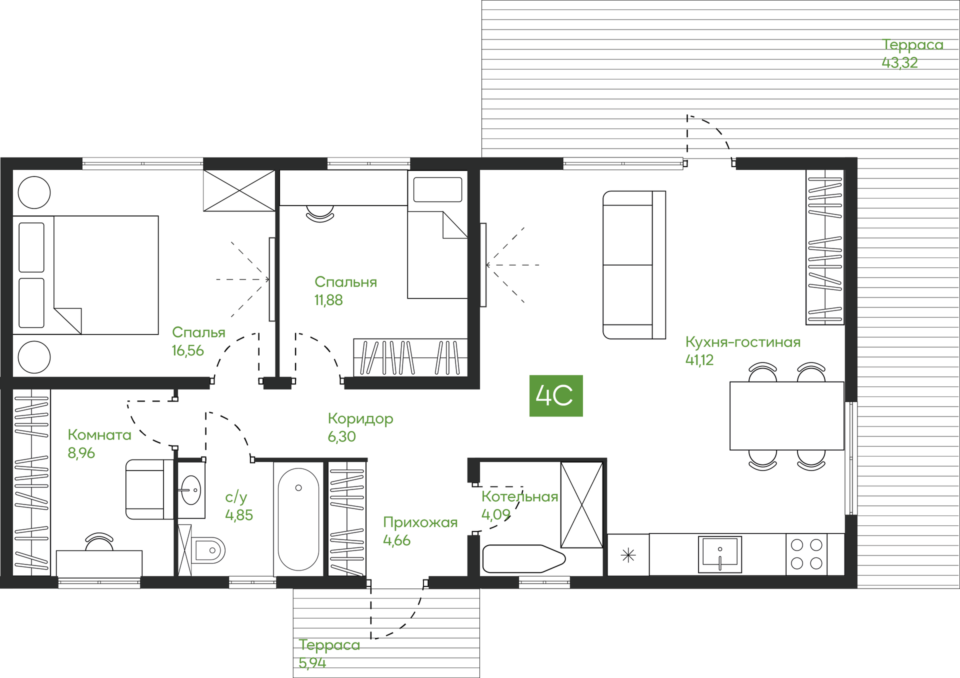 Общая площадь 107 м2