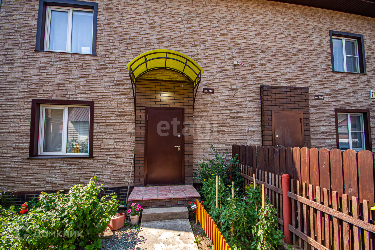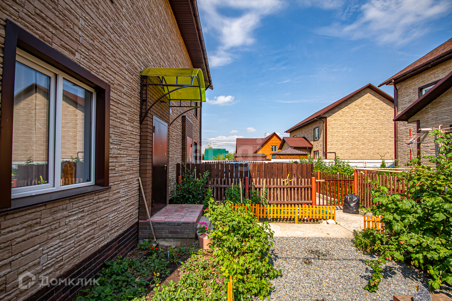 На придомовом участке аккуратно высажены растения, цветы. Можно и собрать урожай ягод: малину, смородину!