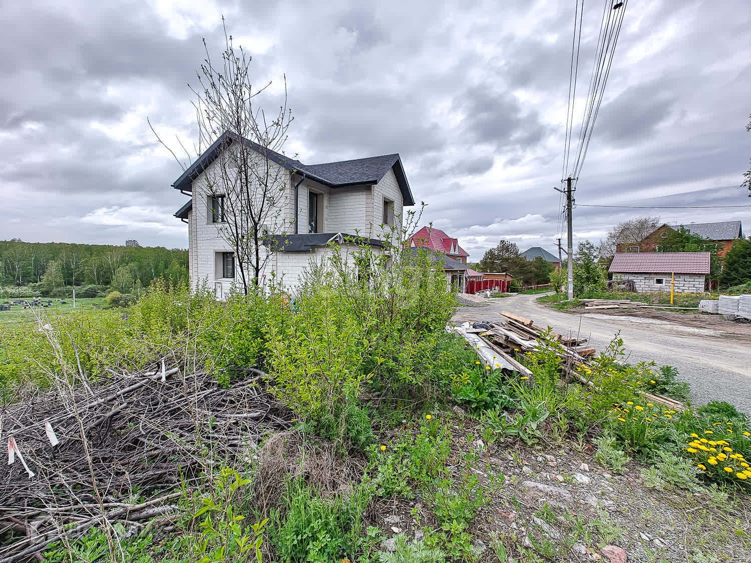 Коммуникации рядом с участком. Электрический столб рядом с участком.