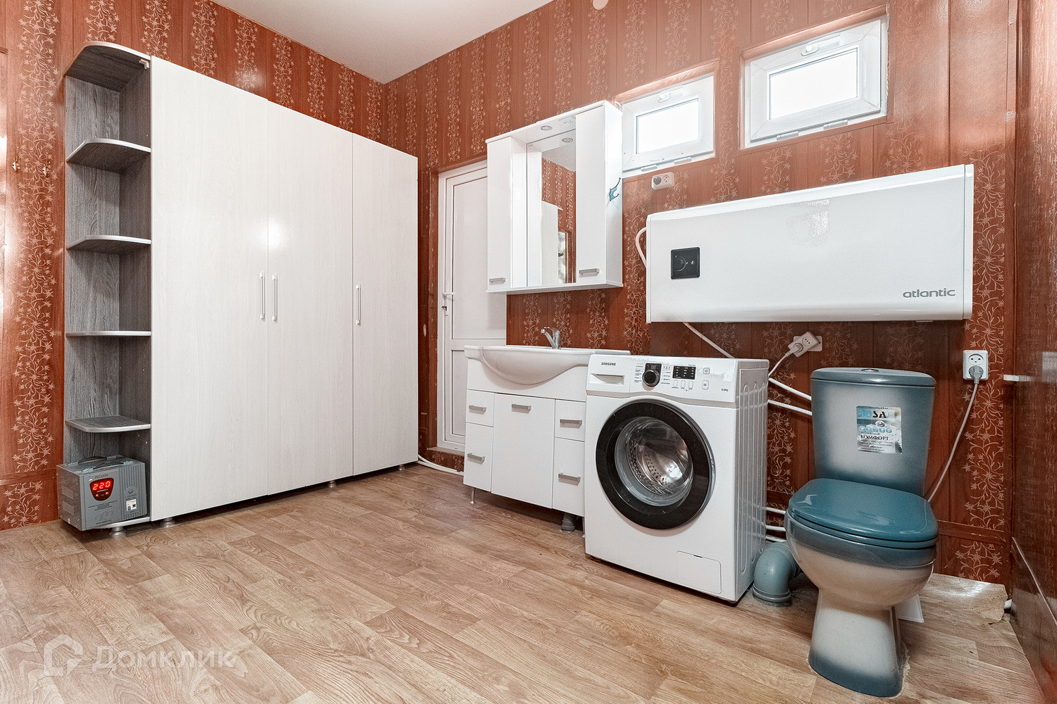 При продаже в доме бонусом остаются кухонный гарнитур с варочной панелью и вытяжкой, встроенный шкаф-купе в спальне, шкаф и тумбы в санузле, стиральная машинка, водонагреватель.