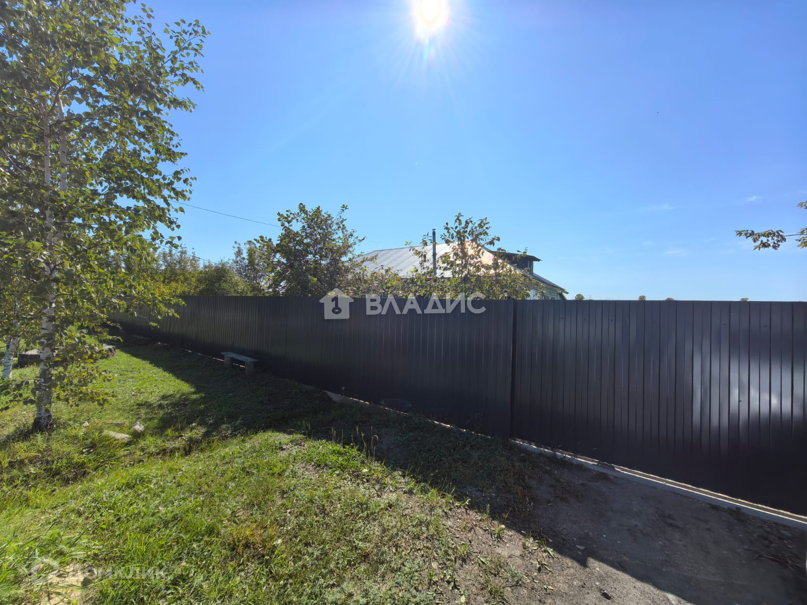 Забор из профнастила на бетонном фундаменте.