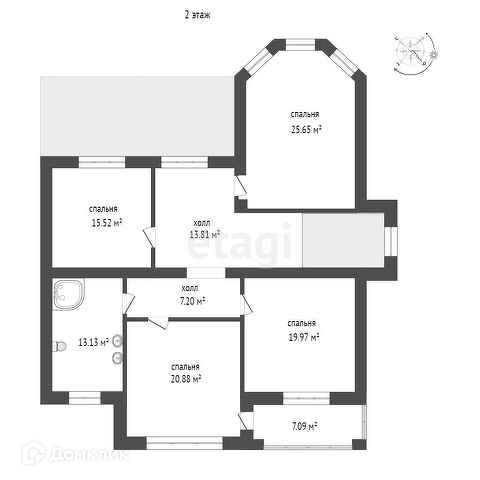 2 этаж: 4 спальни, холл и су.
