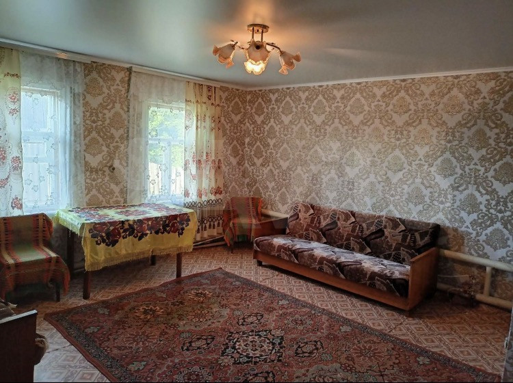 Дом 56 кВ.метров на 50 сотках земли , с хоз. постройками ( гараж, курятник, сарай , летняя кухня и баня) погреб и подвал . В доме есть электричество , газ ( газовое отопление ,котёл и горяча вода - боллер ) канализация , централизованное водоснабжение , во дворе есть колодец . В доме три комнаты и кухня- гостиная , обустроенные мебелью . Пластиковые окна , натяжные потолки. Санузел совмещенный . Есть закрытая веранда 8 кВ.метров и мастерская 4 кВ метра .