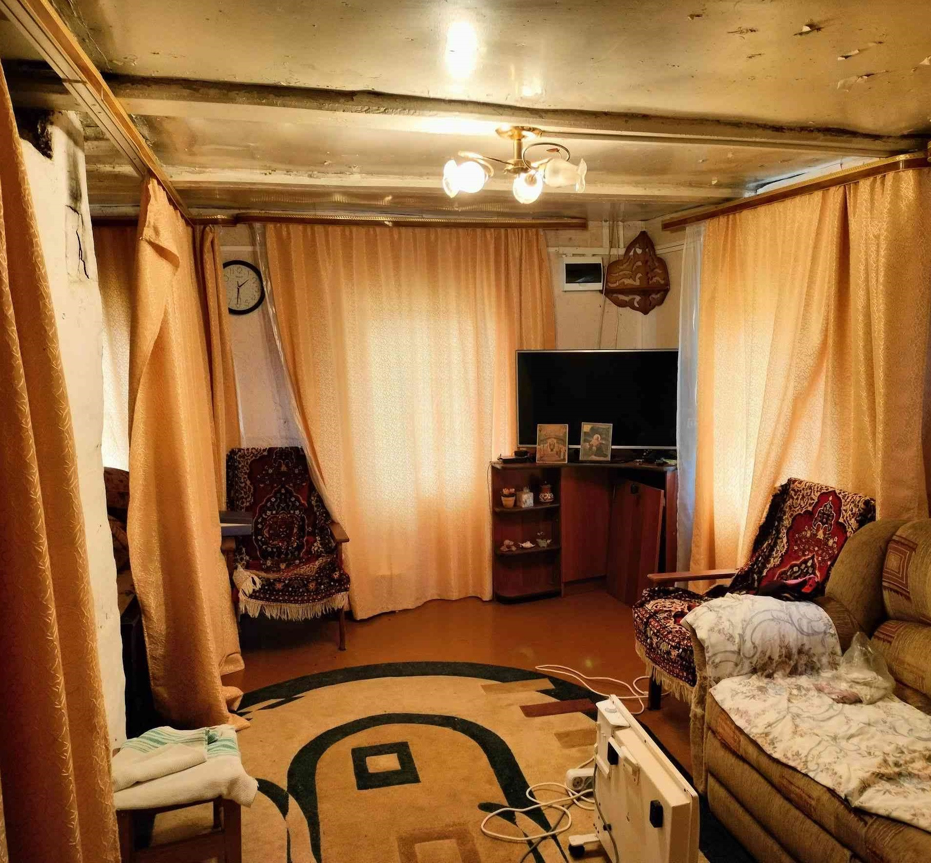 Срубовый дом 1998 года постройки обшит сайдингом, 2 жилые комнаты (10 и 15 кв.м.), кухня. Состояние жилое, косметический ремонт, окна ПВХ - новые стеклопакеты.