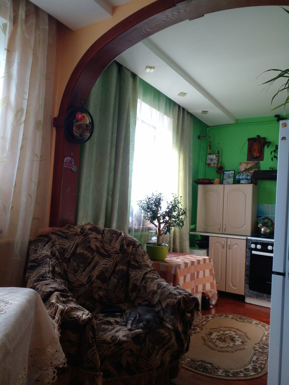 Уютная квартира после капитального ремонта 2015 г (заменены: электрика в том числе эл счётчик, трубы- водоснабжения и отопления-индевидуальное). школа, детский садик, магазины, аптека, администрация в пешей доступности, прилагается два сарая один из них с погребом.