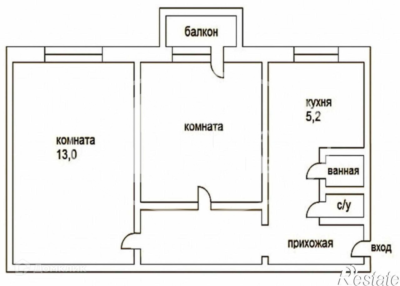 Общая площадь 54 м2