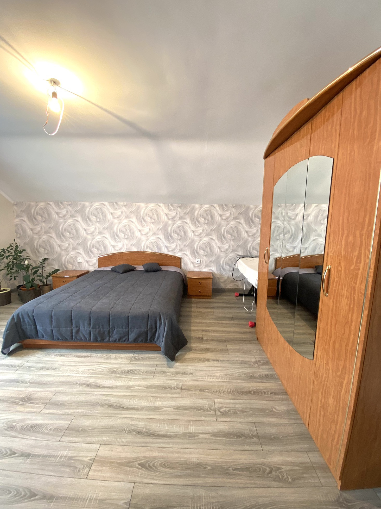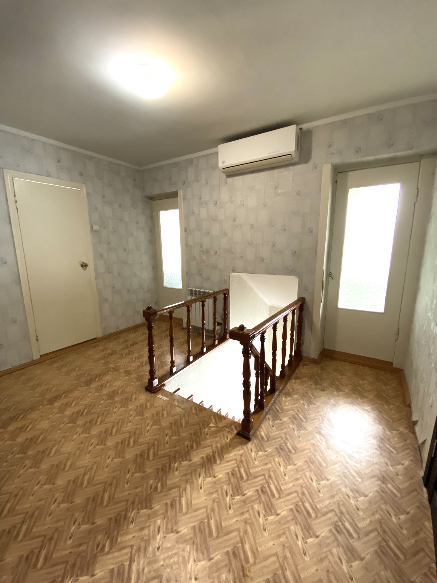 Построен из кирпича, 2 этажа с мансардой и капитальным подвалом под всем домом, ж/б перекрытия. На первом этаже: санузел, котельная, кухня - гостиная 16 м2, зал 30м2, гардеробная площадь. Удобная деревянная цельная лестница между этажами. Второй этаж: три спальня, санузел, две застеленные с внутренней отделкой лоджии с теплыми полами.