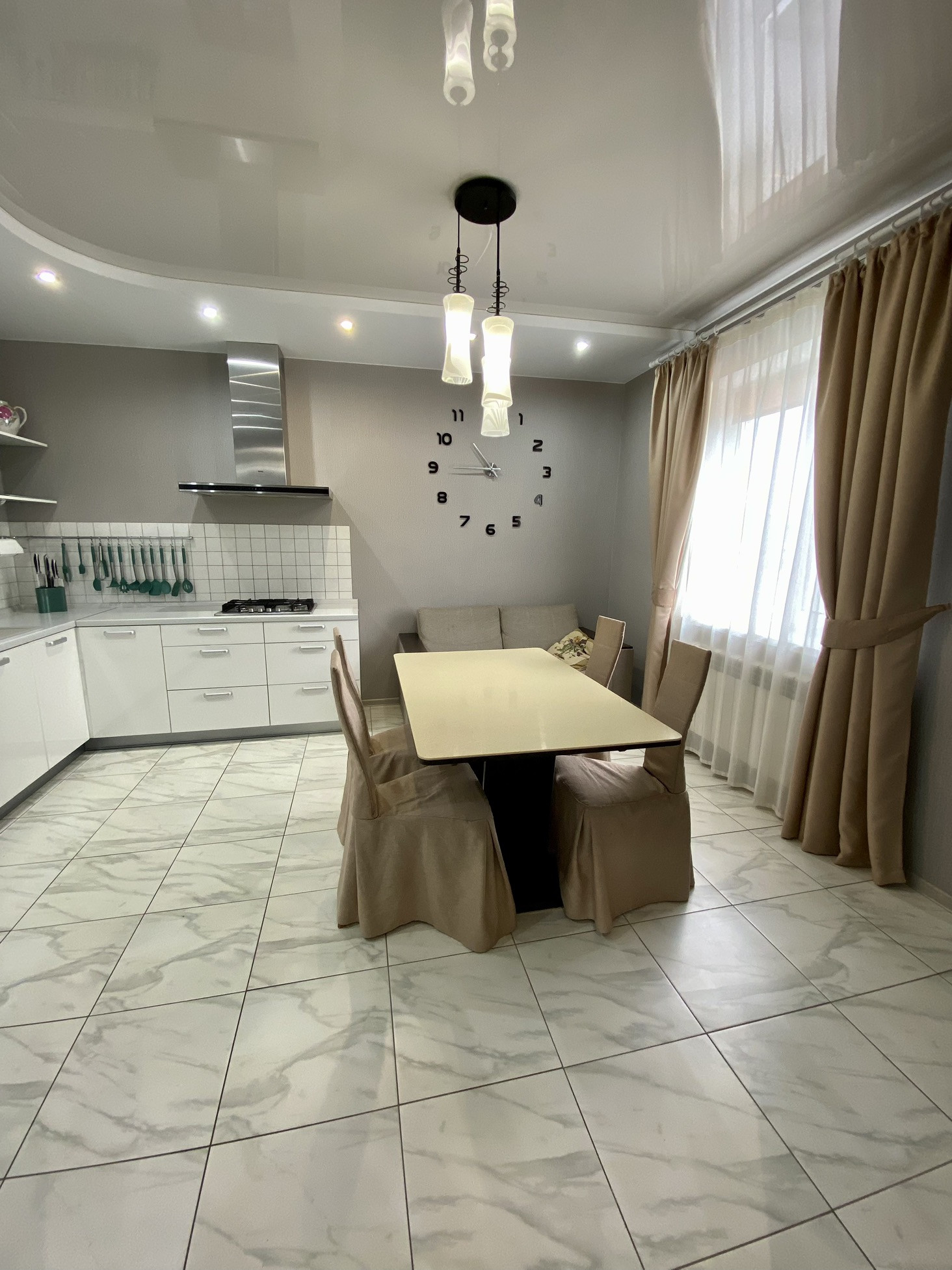 Полы на первом этаже с подогревом. По отделке внутри дома: ламинат, керамогранит, пластиковые окна, кафель в санузлах, натяжные и подвесные потолки, выровненные стены и многое качественное другое. Создана комфортная, уютная, стильная обстановка.