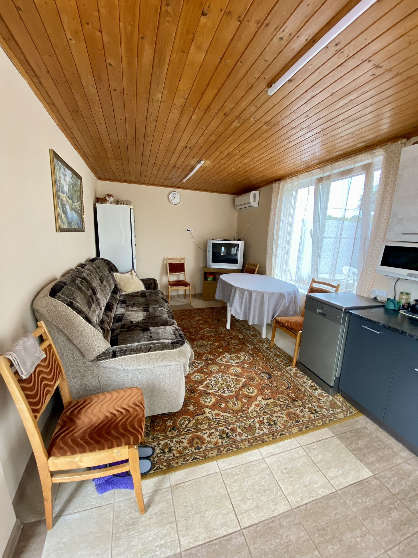 Рядом с домом кирпичная летняя газифицированная кухня, капитальный гараж с глубоким погребом под всей площадью и с незавершенной отделкой баня. Кухня обустроена мебелью и бытовой техникой, обстановку планируется оставить.