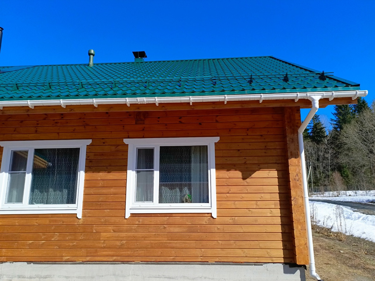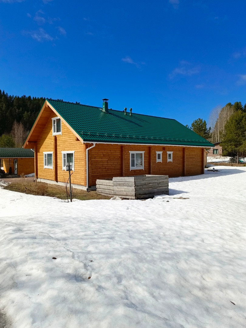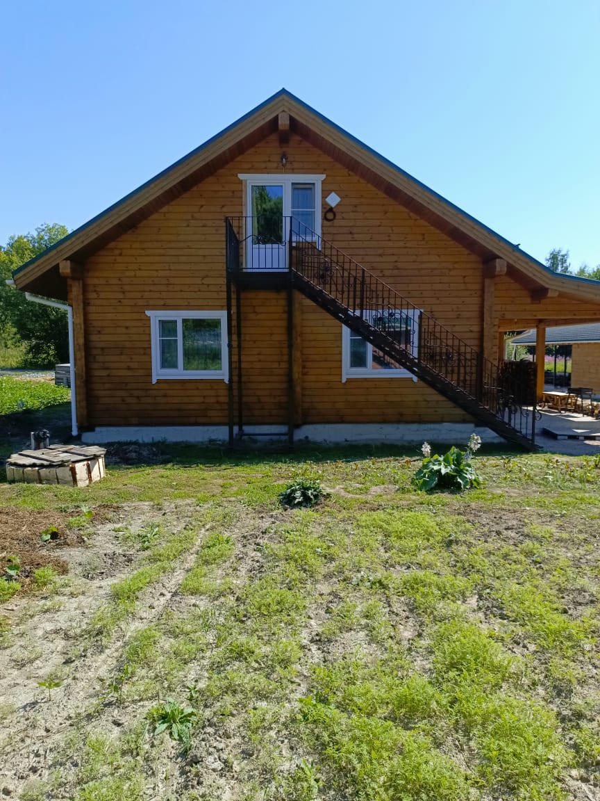 Клееный брус 200Х160, фасад окрашен  немецкой краской Remmers.  Фундамент:утепленная шведская плита. В доме есть все коммуникации:  вода (колодец), электричество-24 кВт, канализация  бетонный септик. По периметру участка выполнен дренаж с выводом в придорожную канаву. Участок разработан, оканавлен с 4-х сторон.
