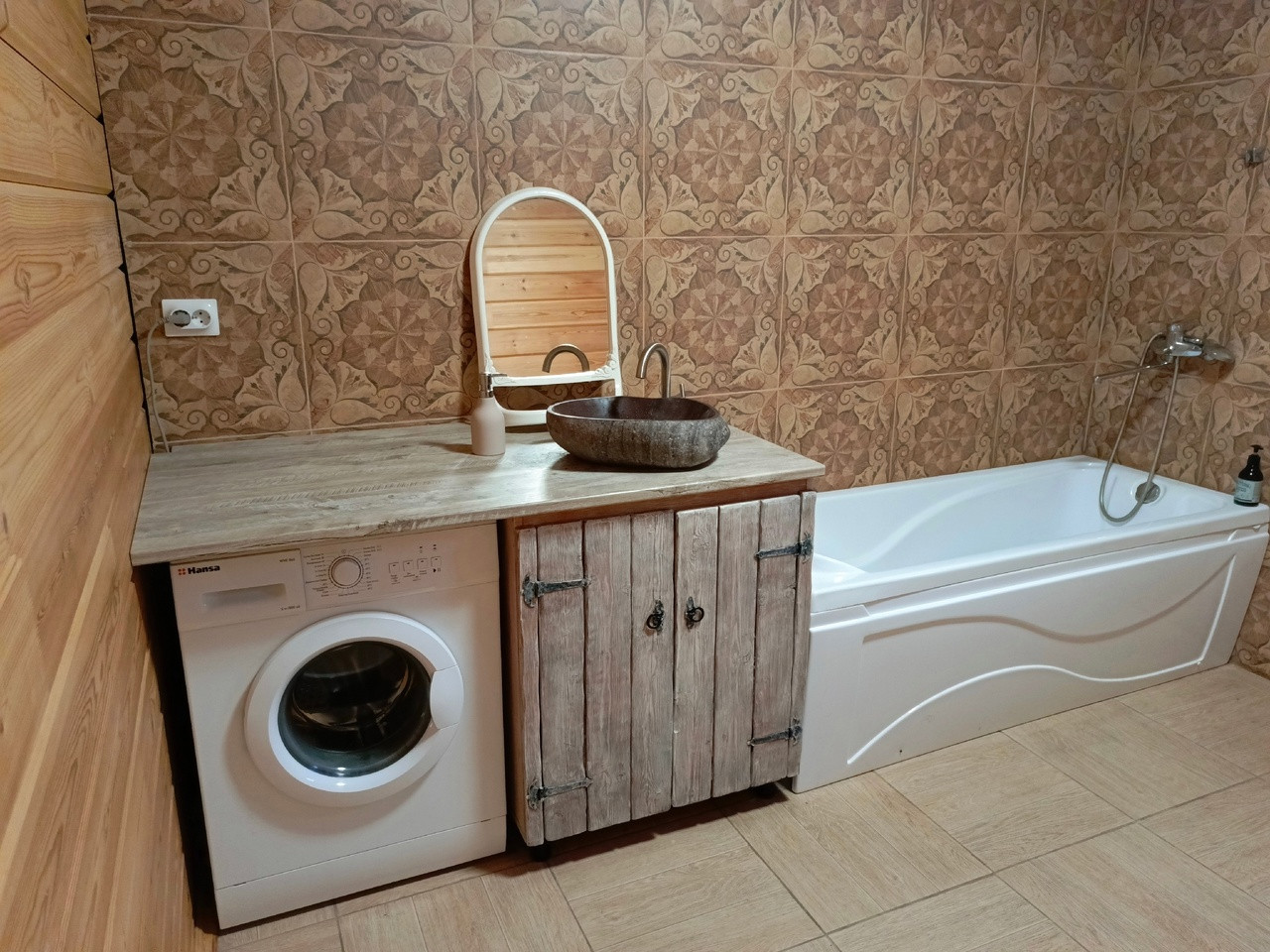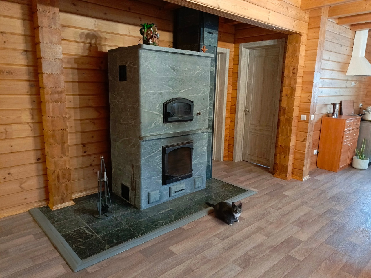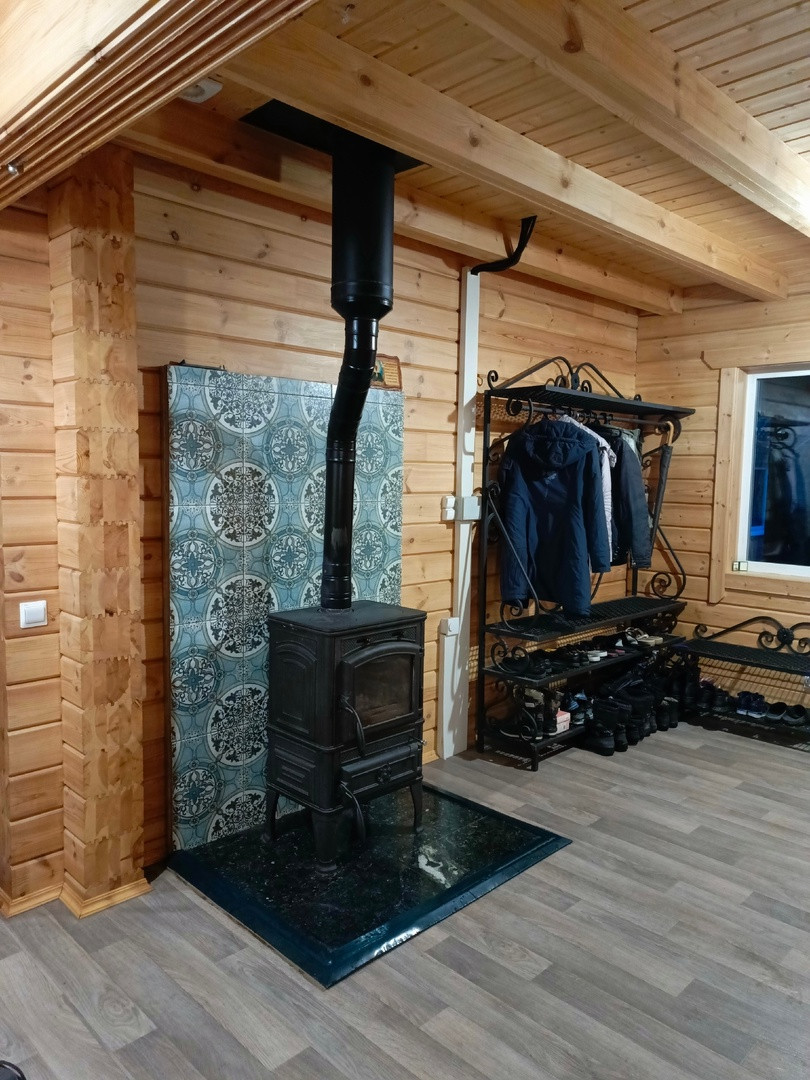 Отопление. Первый этаж: водяные теплые полы,  камин из талькомагнезита,  чугунная печь GuchaLava. Мансарда: электрический обогреватель Ensto. Бойлер напольный Jaspi на 200 литров.