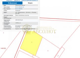 Продам участок, имеется разрешение на строительство дома Вязовая, улица Георгия Попова, 6, кадастровый номер: 66:21:1001001:92, |