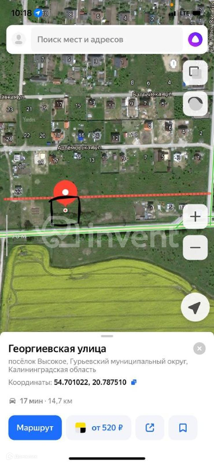 Участок под ИЖС, 10 сот. на продажу в поселке Высокое, Георгиевская улица