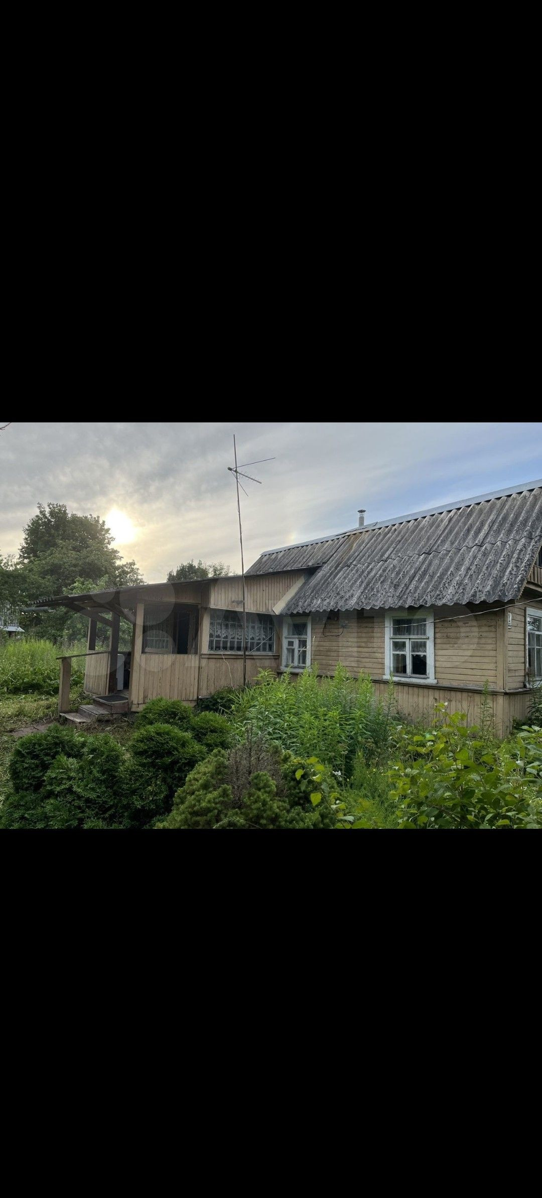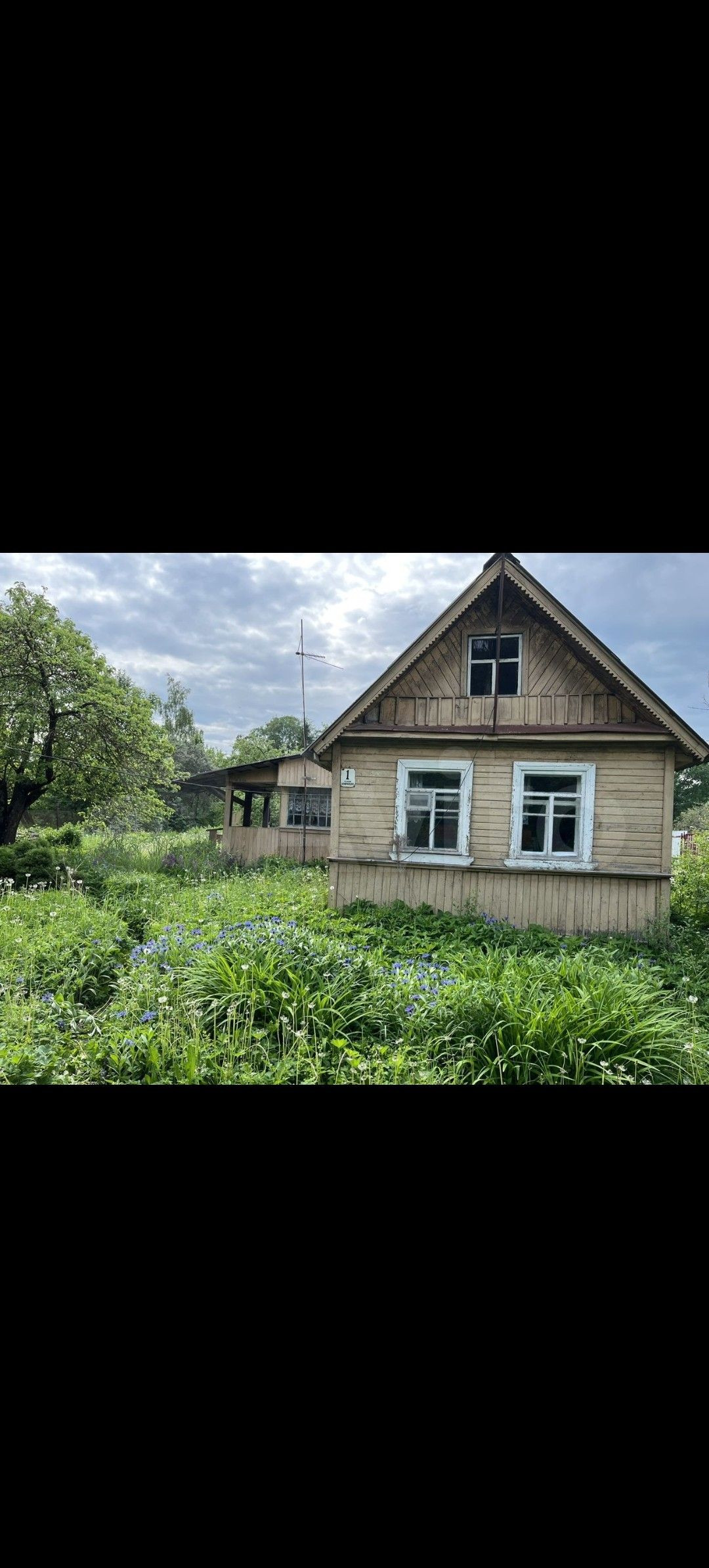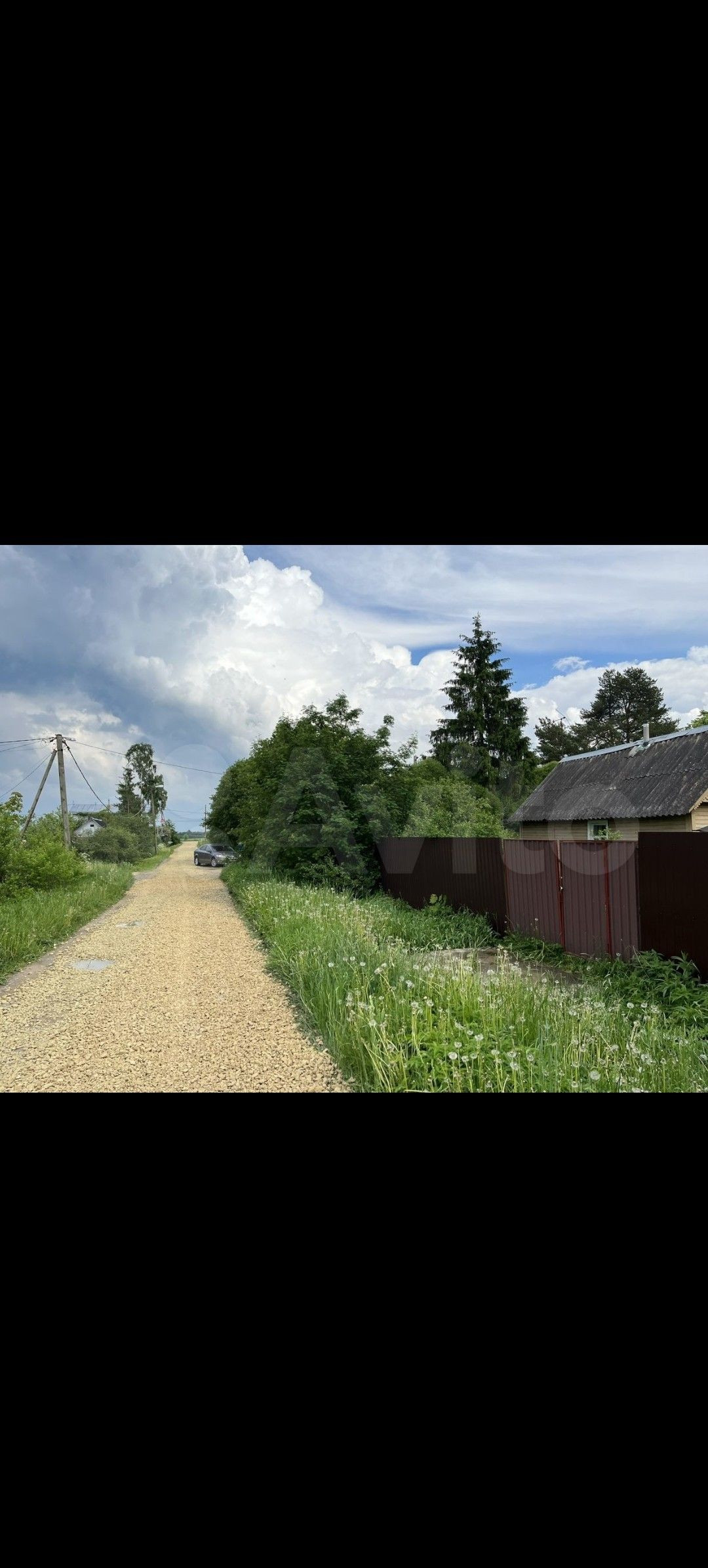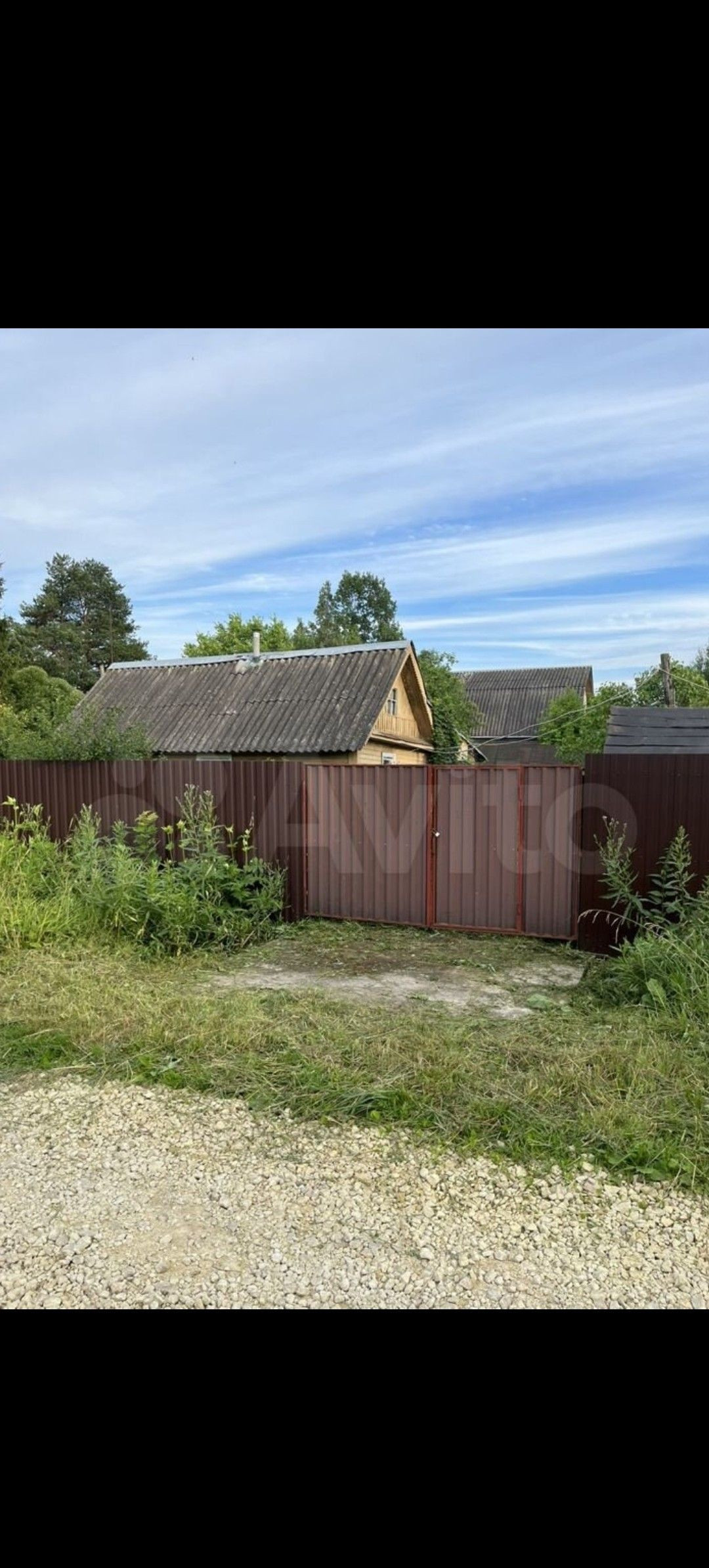 Участок с домом. Огорожен забором из профлиста, с заездом (бетонной плитой) со строны ворот.