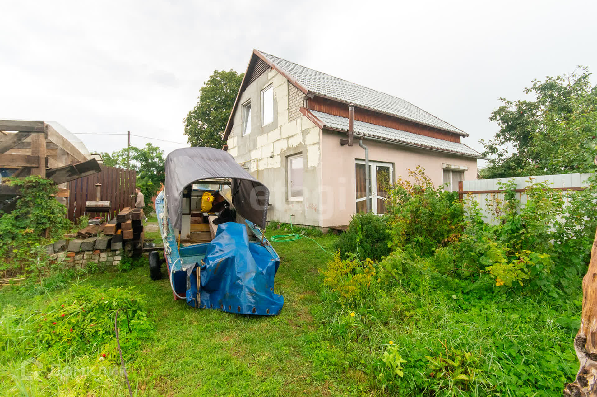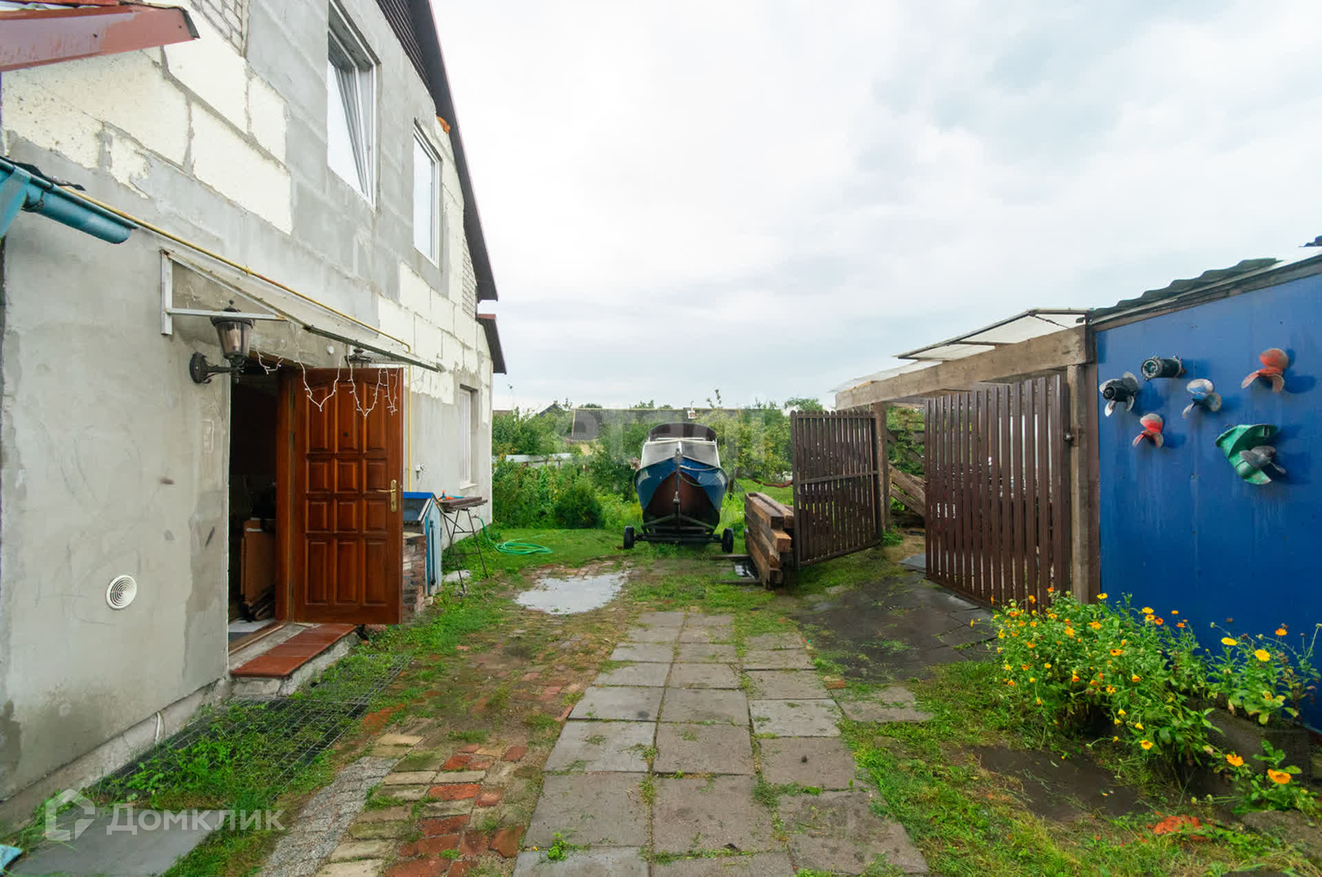 Во дворе дома расположен немецкий подвал,организован навес для мотоцикла, лодки или машины. Откатные ворота.