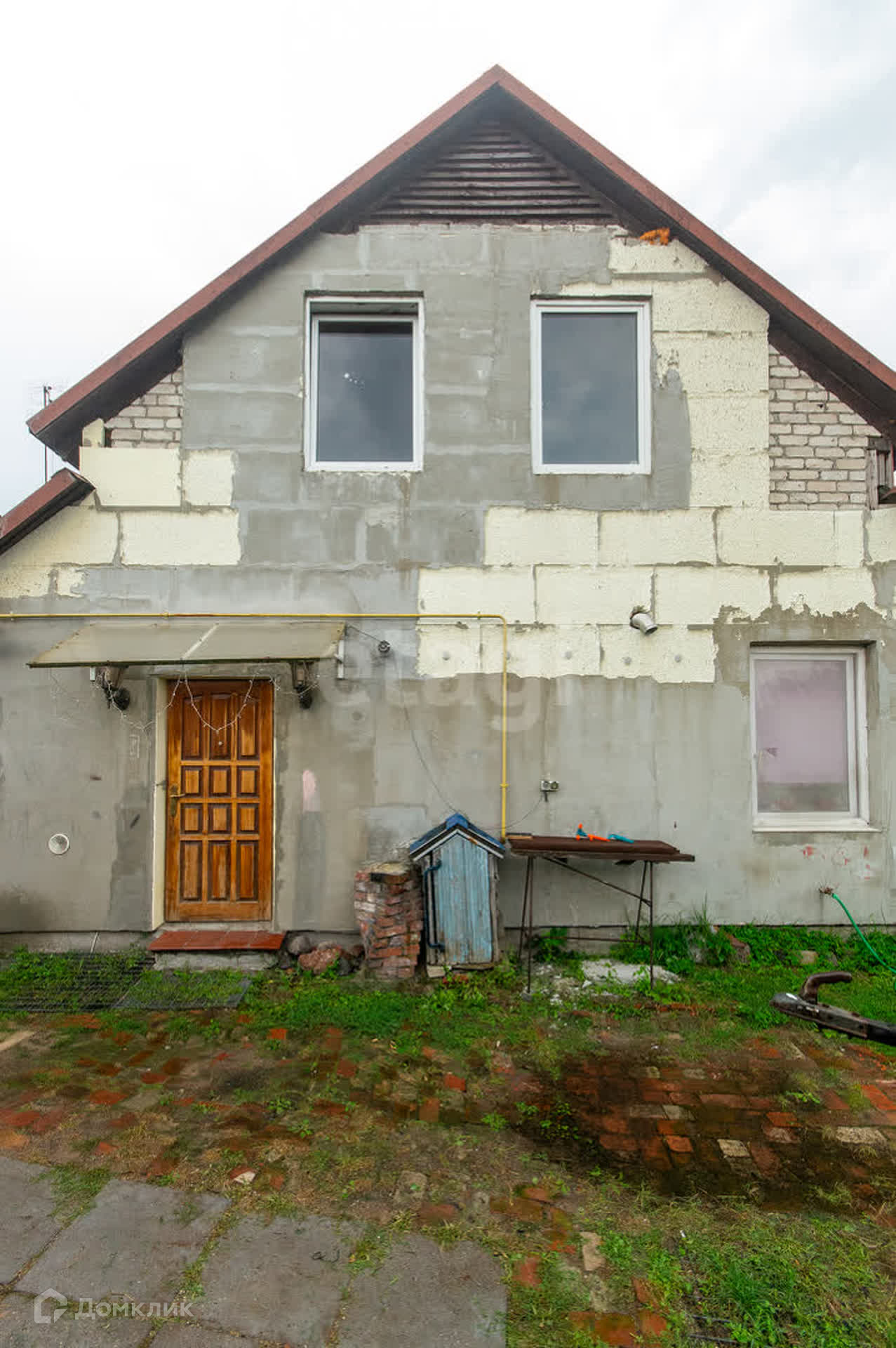Дом составлен из двух проектов: Финский домик и основной из Газосиликата.Участок 8,78 соток- разработан, растут плодовые деревья - тишина и покой.