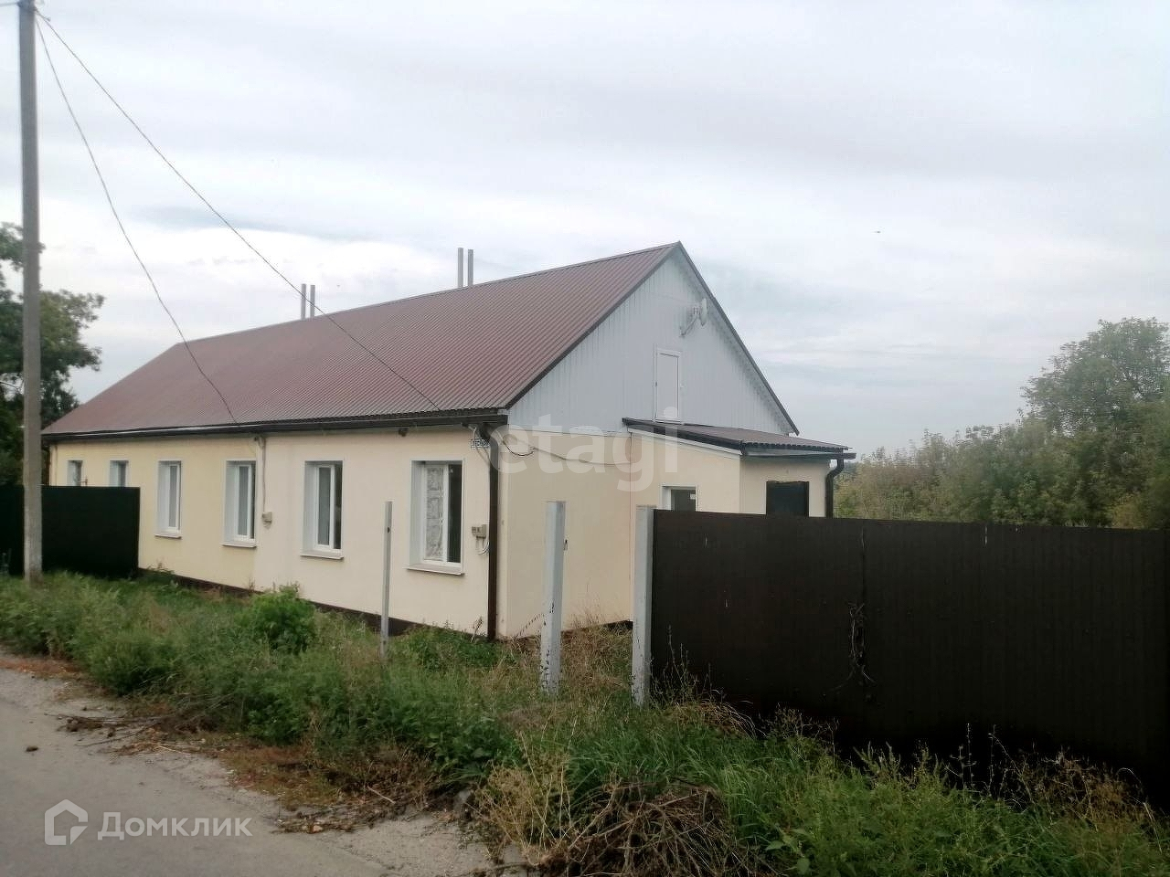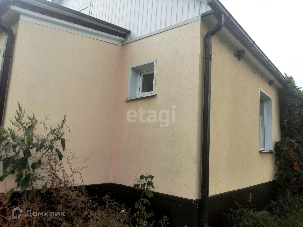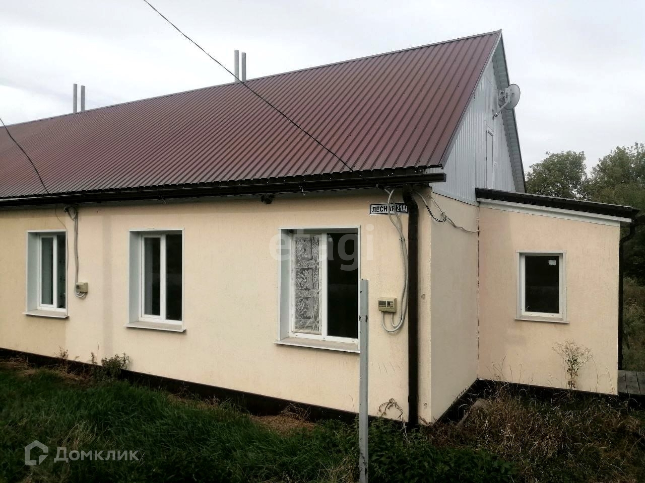 Материал стен — блок, утеплен и обшит сайдингом. Материал крыши — металопрфиль.