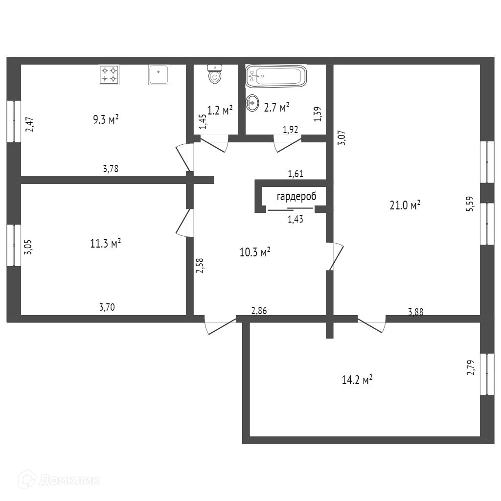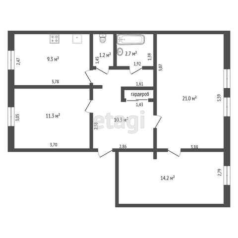 Общая площадь 70.4 м2
