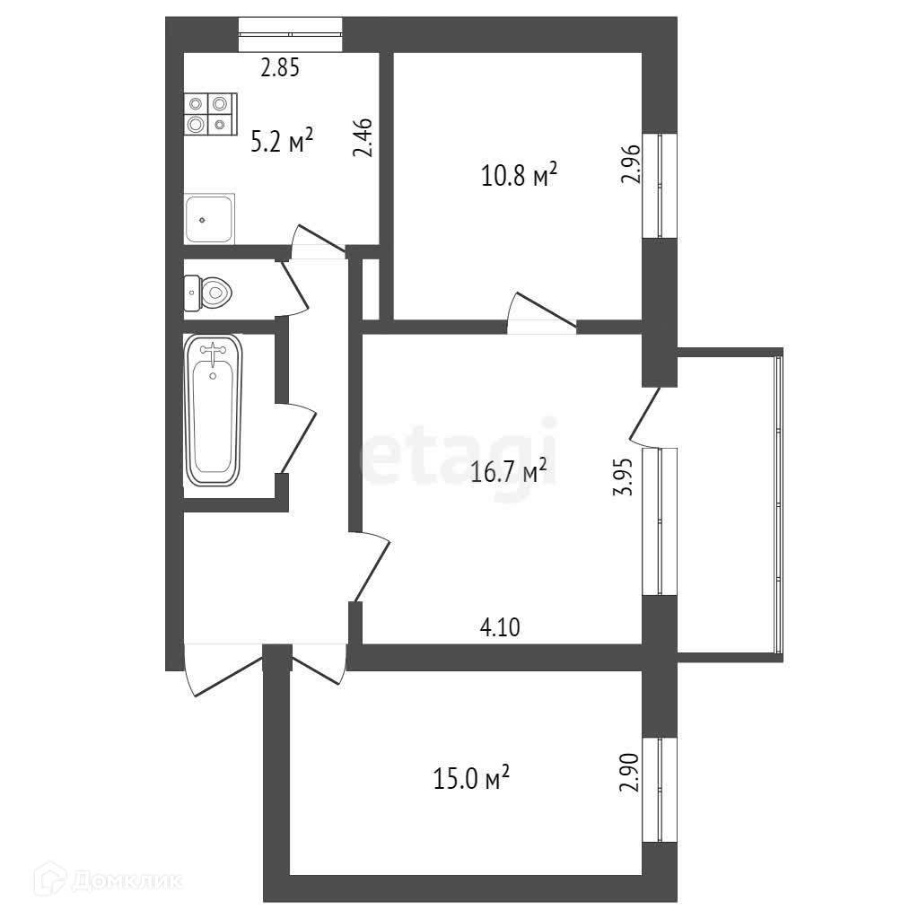 Три просторные комнаты, раздельный санузел, застекленный балкон, в коридоре небольшая кладовка - условие для проживания большой семьи.