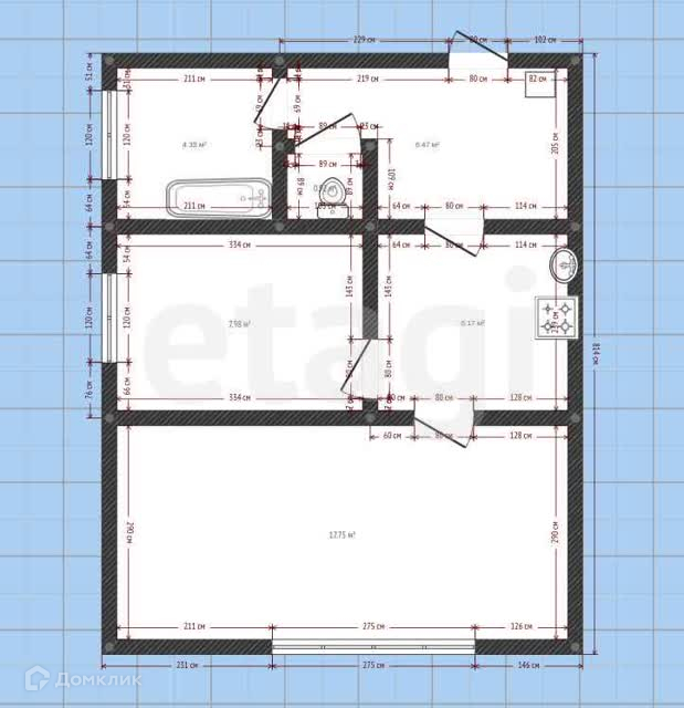 Общая площадь 52.6 м2