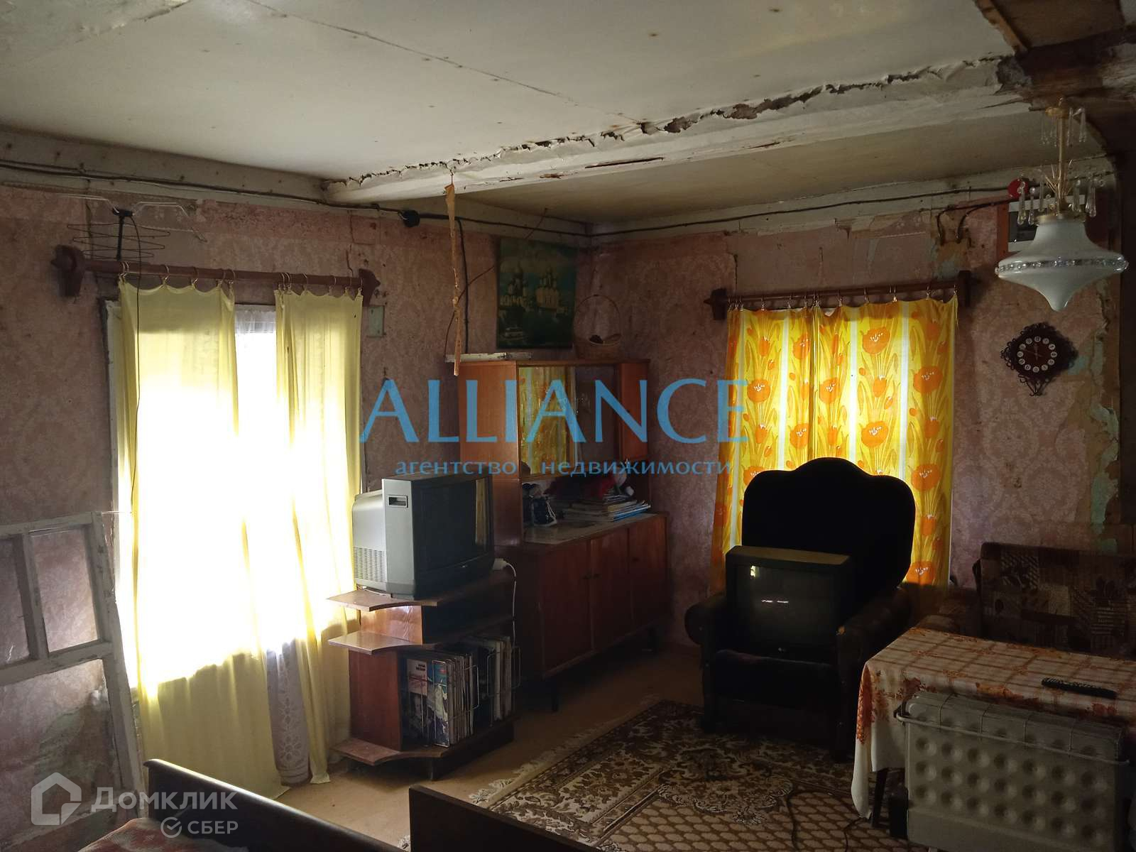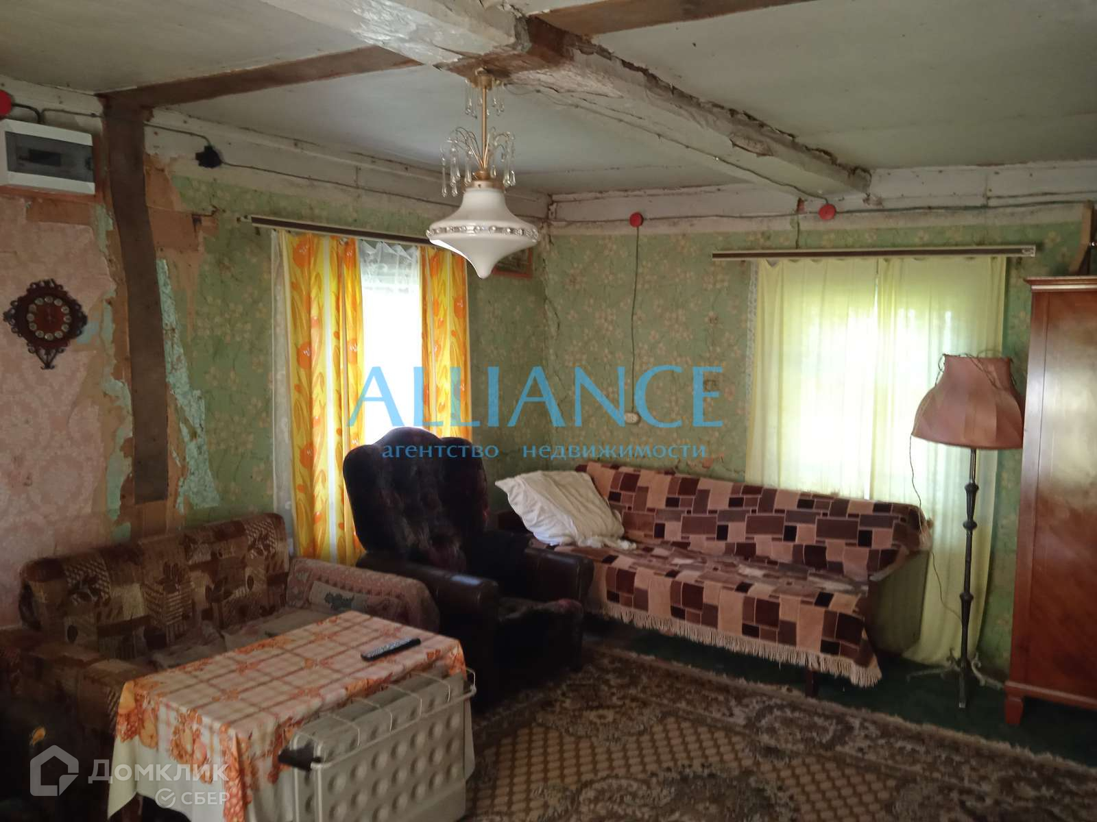 Фундамент столбчатый, крыша шифер, дом обшит тесом. Печь демонтирована, убраны перегородки внутри дома, получилась просторная комната и кухня. Пол в комнате перебирали.